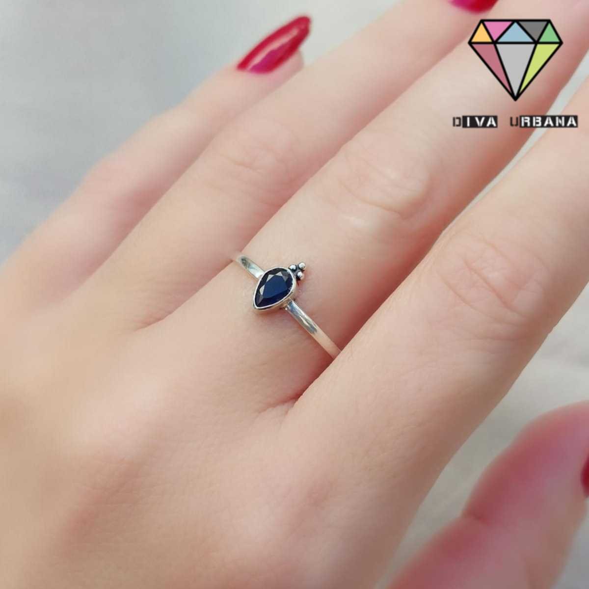 A2207 ANEL PRATA 925 DE PEDRA NATURAL GOTA SAFIRA