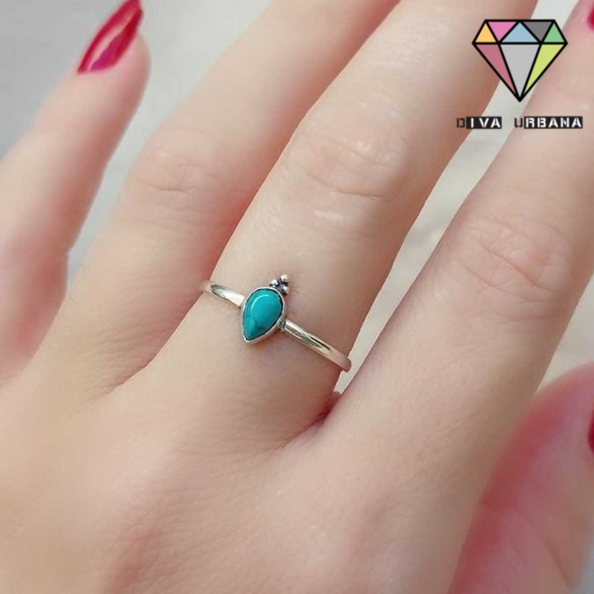 A2212 ANEL PRATA 925 DE PEDRA NATURAL GOTA TURQUESA