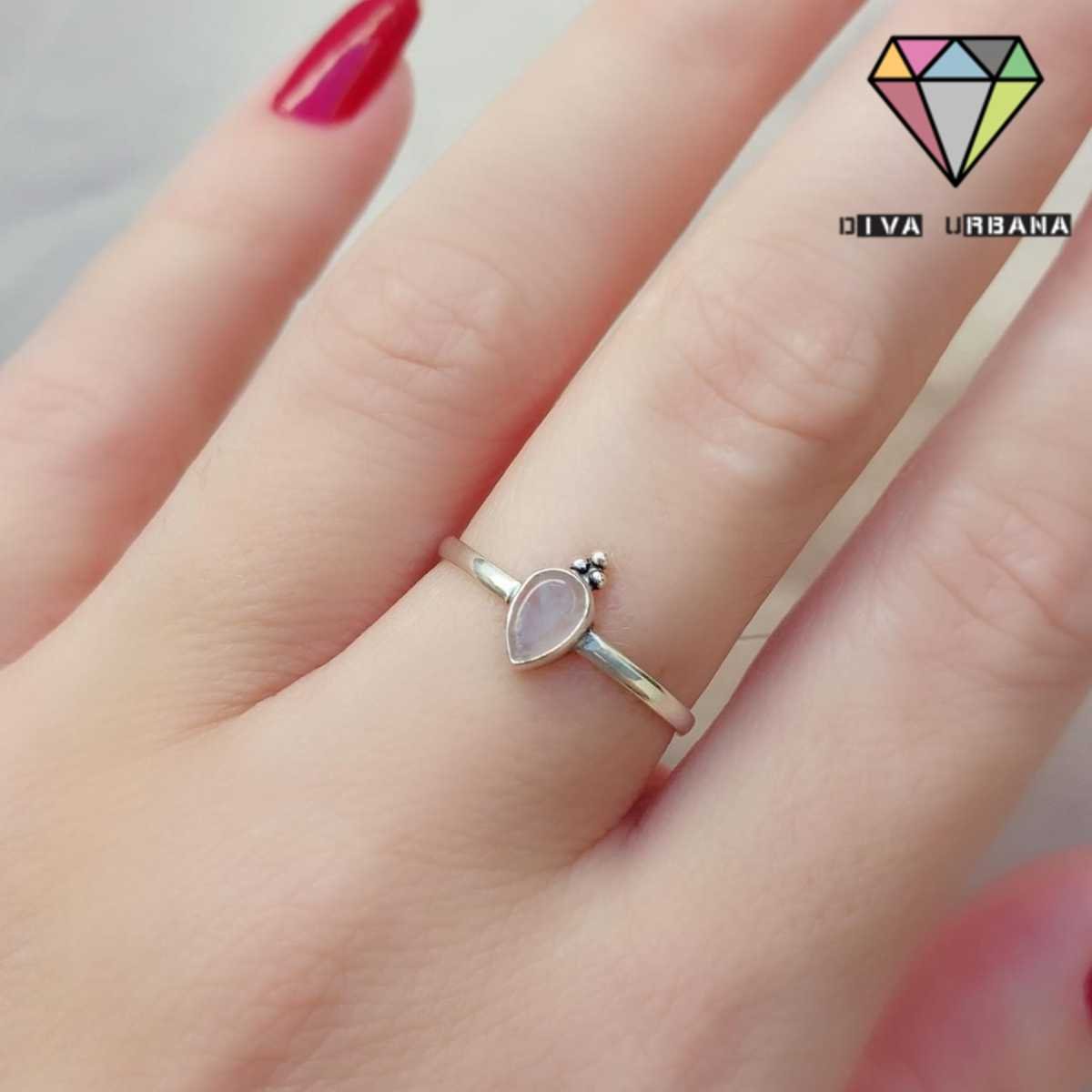 A2224 ANEL PRATA 925 DE PEDRA NATURAL GOTA PEDRA DA LUA