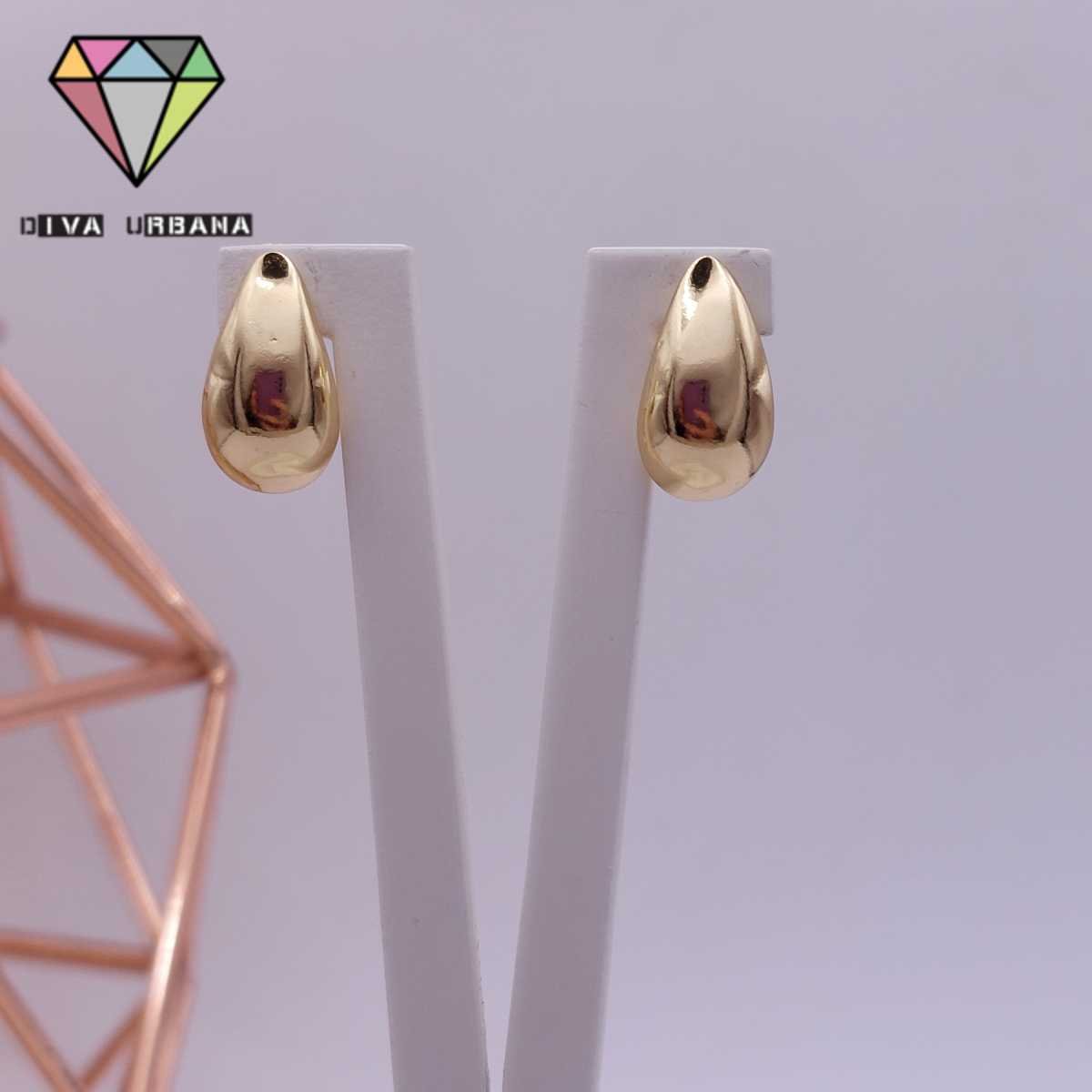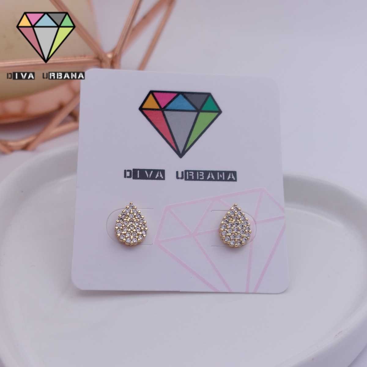 B6790 BRINCO MOLDURA DOURADA PEDRA GOTA CRISTAL P