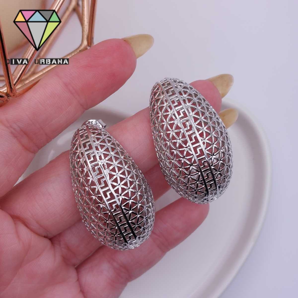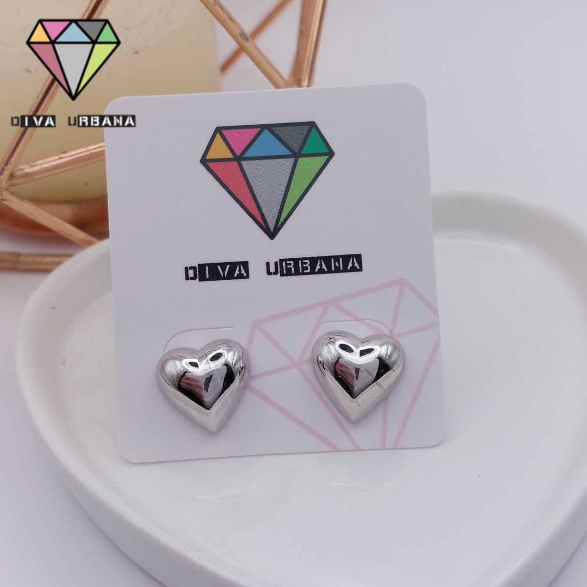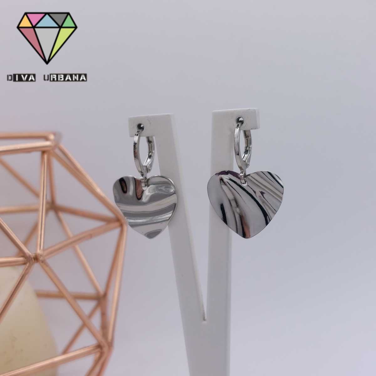 B6296 BRINCO ARGOLA PINGENTE CORACAO CHAPA ORGANICA RODIO