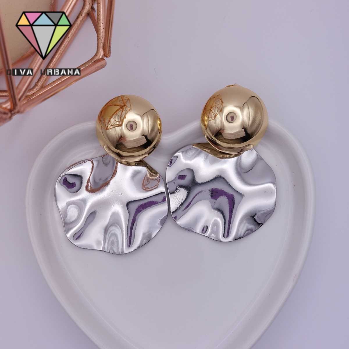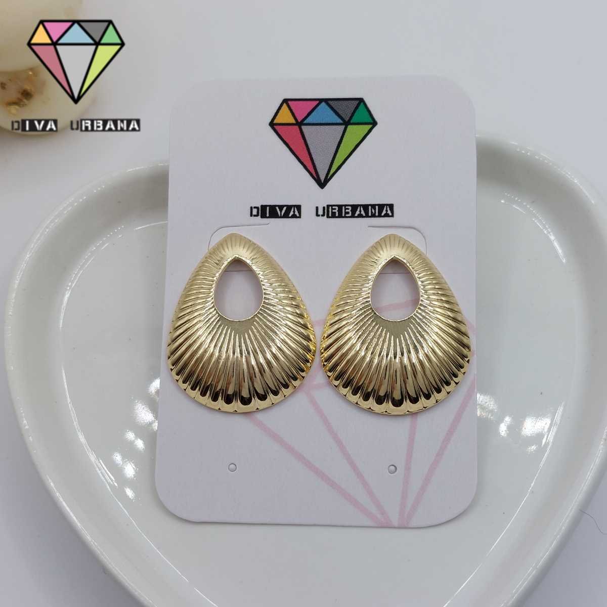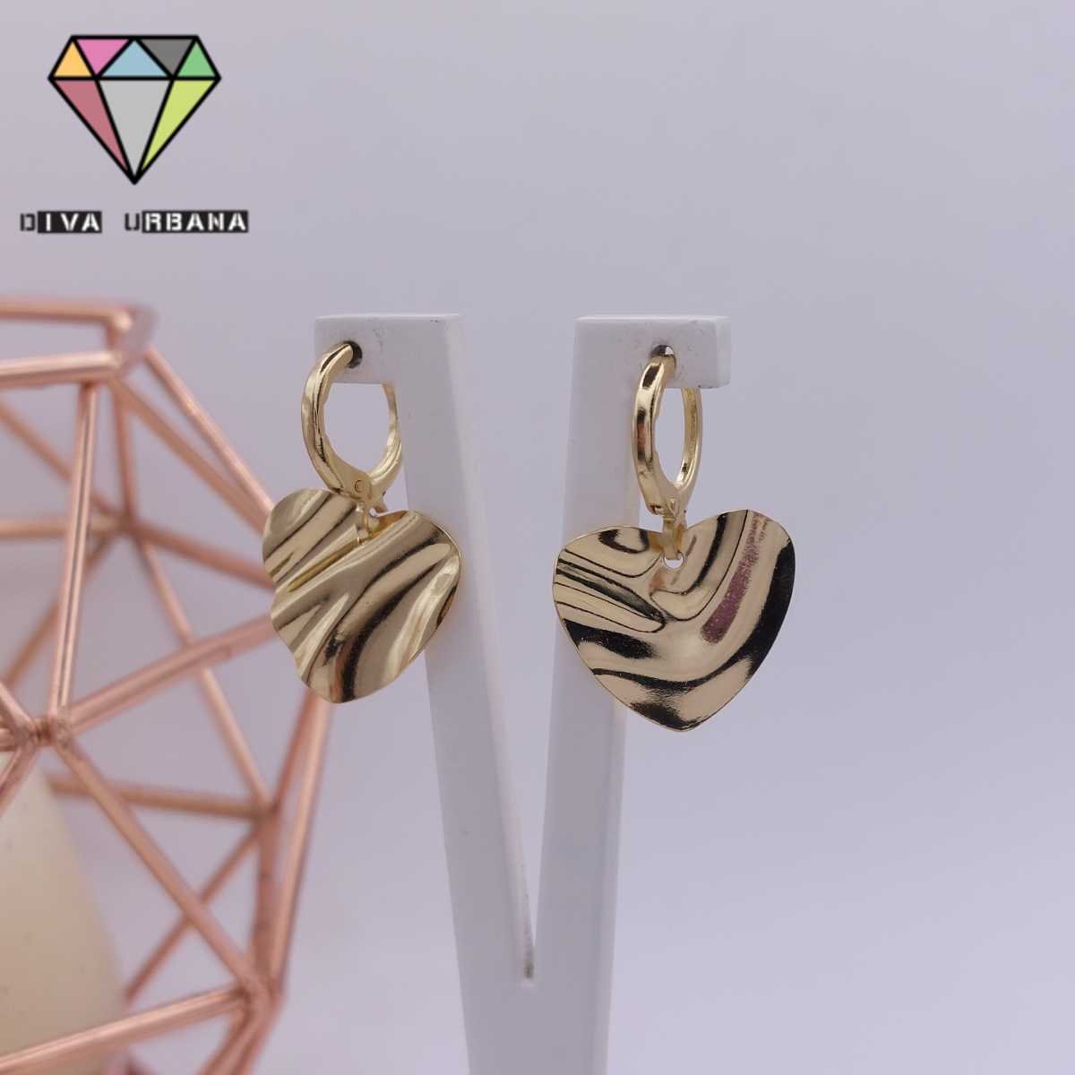 B6294 BRINCO ARGOLA PINGENTE CORACAO CHAPA ORGANICA DOURADA