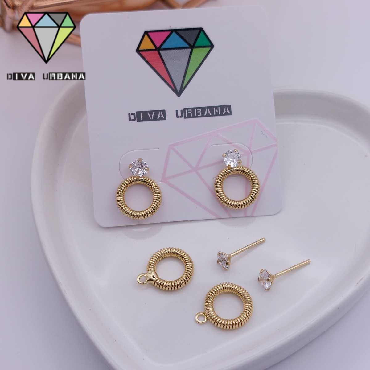 B6303 BRINCO PINO PTO DE LUZ CRISTAL ARO DOURADO RANHURAS M