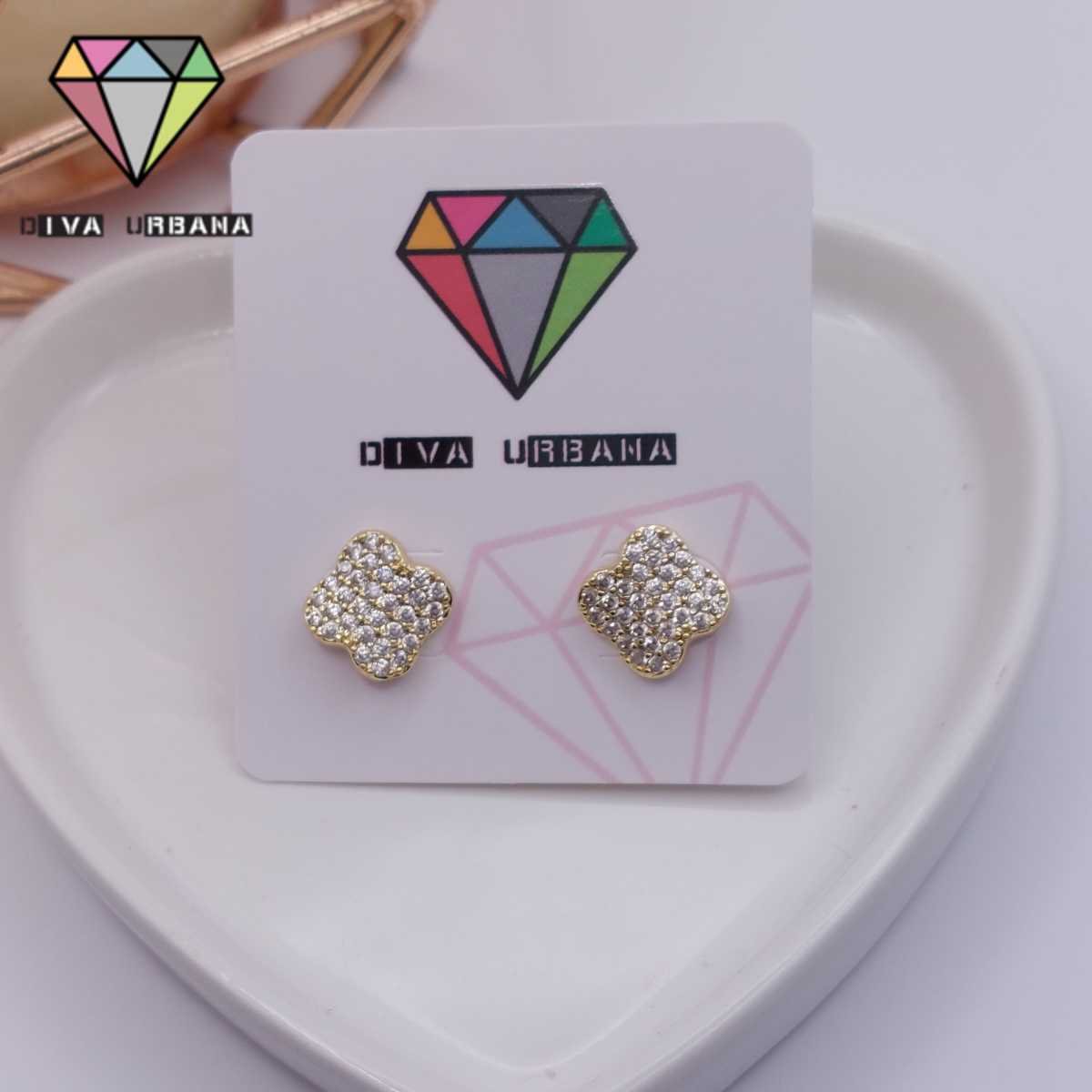 B6326 BRINCO PINO TRAMA ITALIANA FLOR CRAV ZIRC CRISTAL