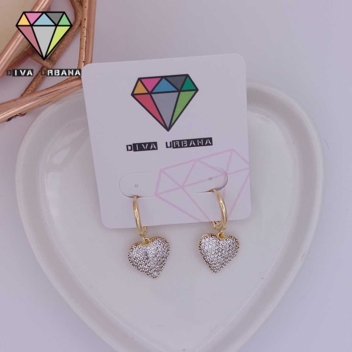 B6672 BRINCO ARGOLA PINGENTE CORACAO CRAV ZIRC CRISTAL