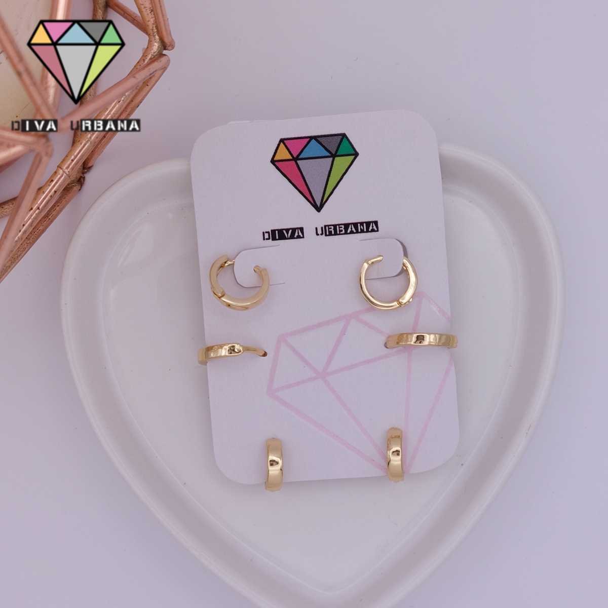 B6707 BRINCO TRIO ARGOLAS DOURADAS BORDA QUADRADA