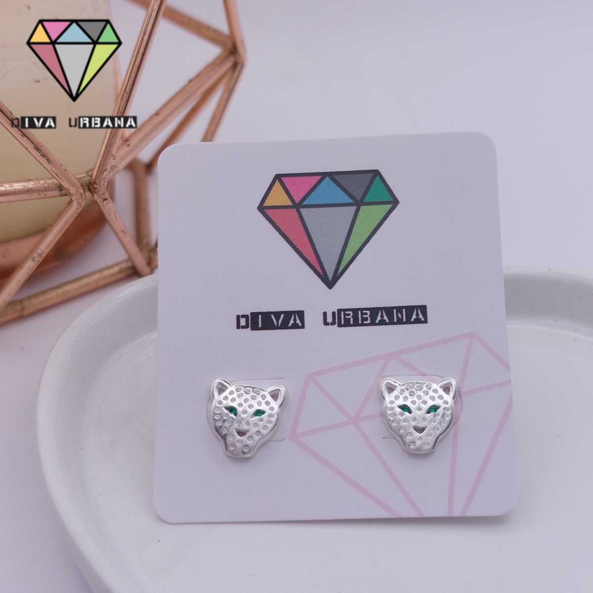 B6729 BRINCO PINO PRATA 925 LEOPARDO OLHOS ZIRC VERDES