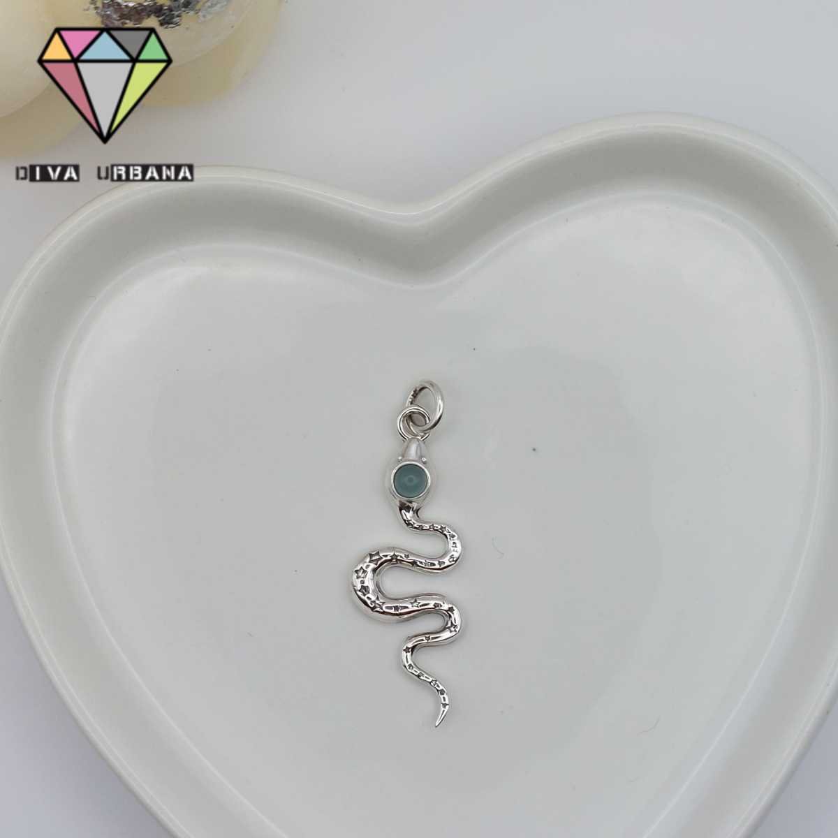 PI0435 PINGENTE PRATA 925 BALI COBRA PEDRA NATURAL AGUA MARINHA