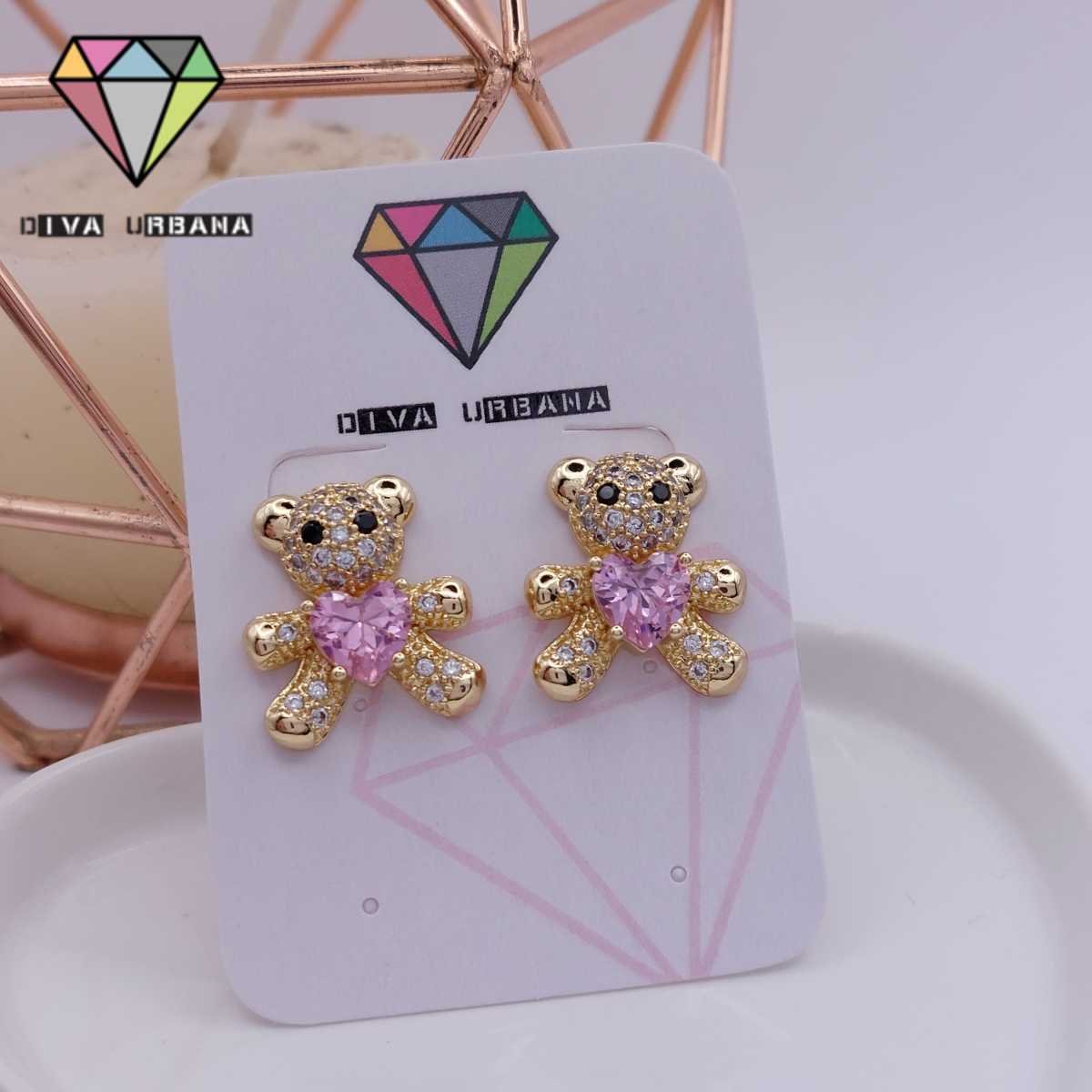 B5747 BRINCO PINO URSO CRAV ZIRC CRISTAL CORACAO CENTRAL