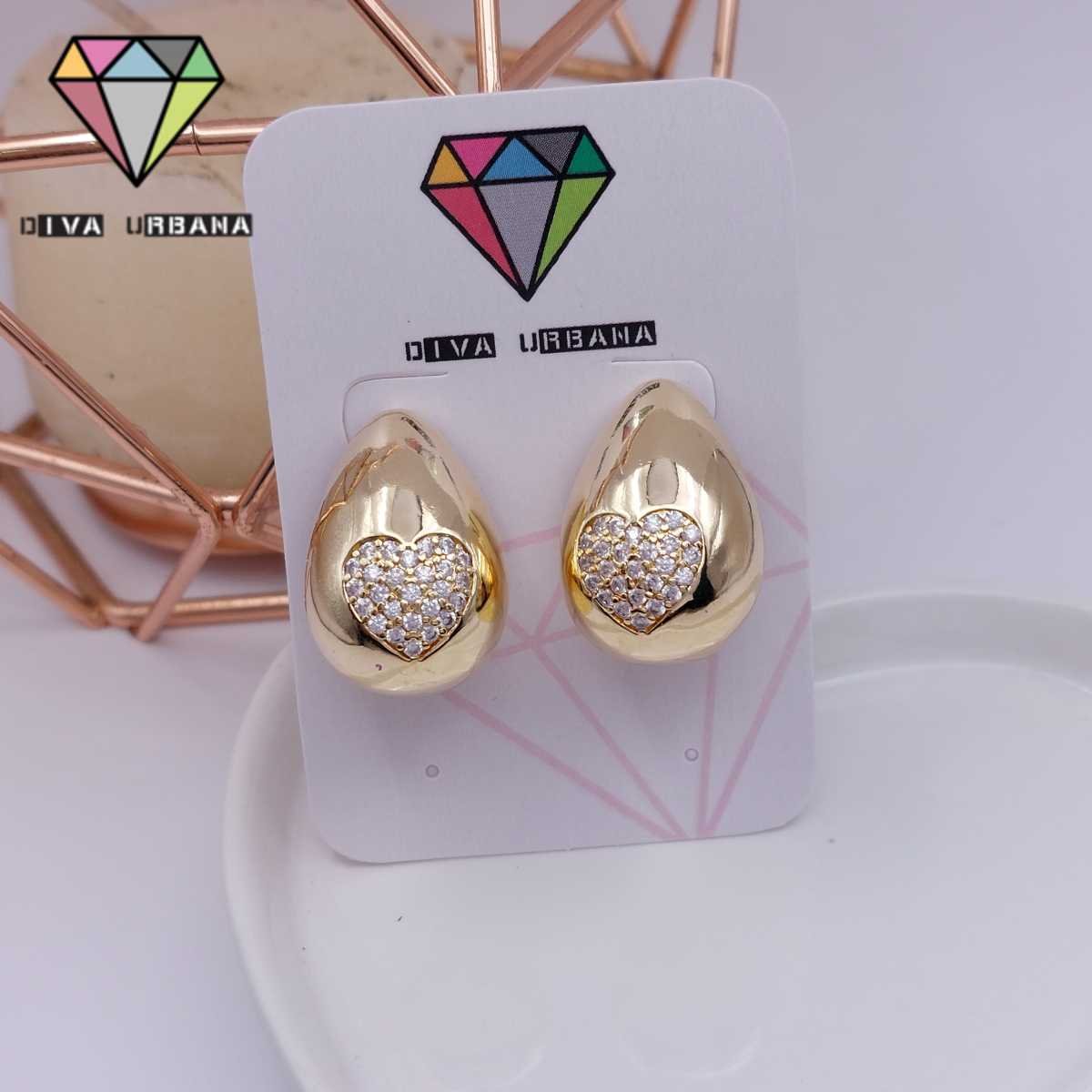 B5733 BRINCO GOTA M DOURADA CORACAO CRAV ZIRC CRISTAL
