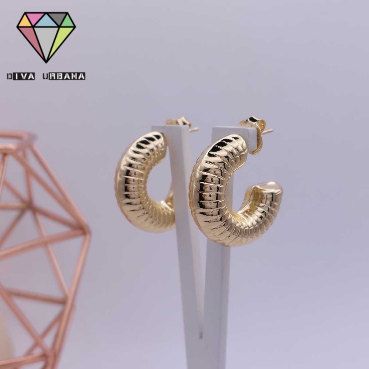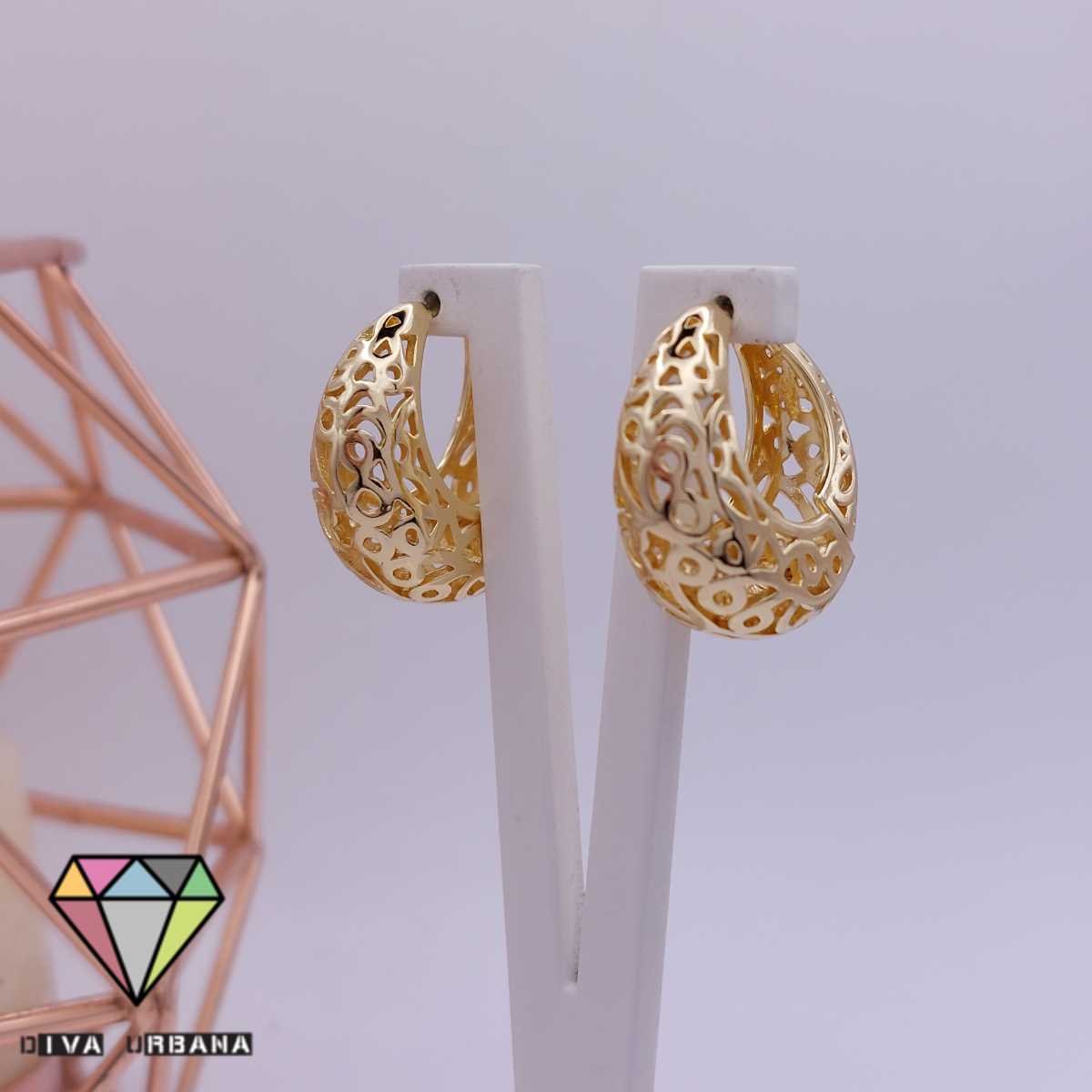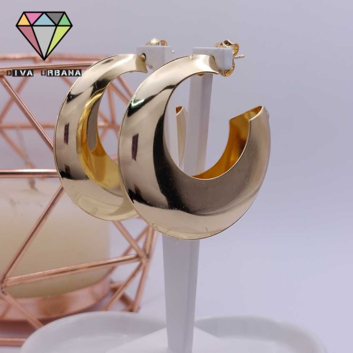 B5741 BRINCO ARGOLA PINO DOURADO SEMICIRCULO VAZADO