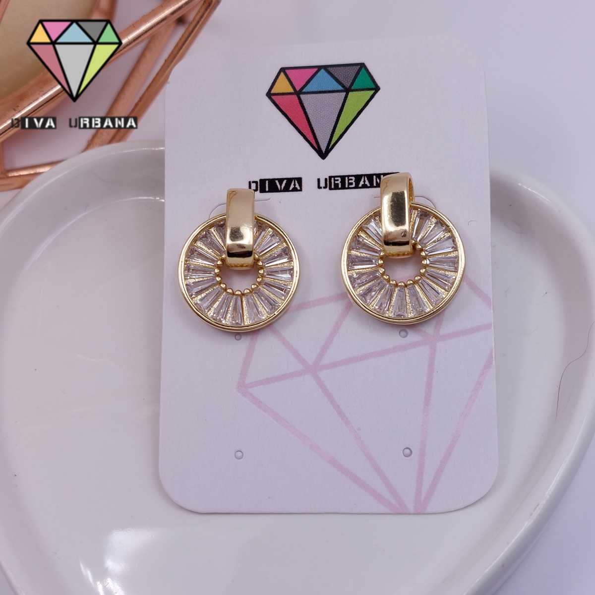 B5544 BRINCO ARGOLA U DOURADA FACE CRAV ZIRC CRISTAL