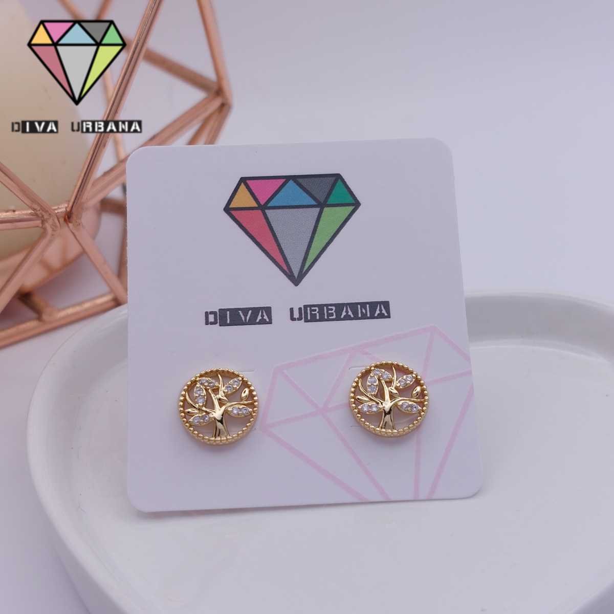 B5974 BRINCO PINO ARVORE REDONDO CRAV ZIRC CRISTAL