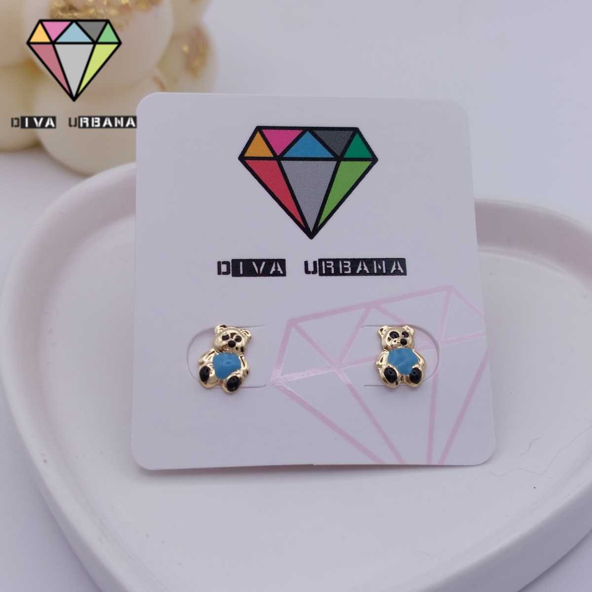 B6066 BRINCO INFANTIL PINO URSINHO DOURADO CORACAO AZUL