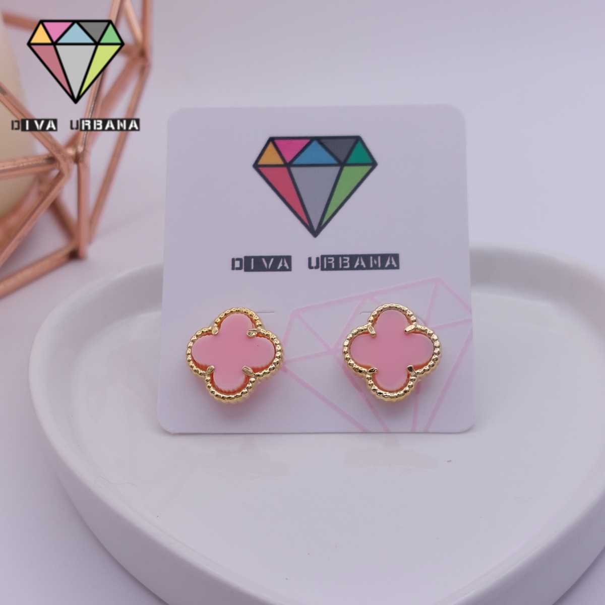 B6545 BRINCO PINO TREVO ROSA INSP ALTA JOALHERIA