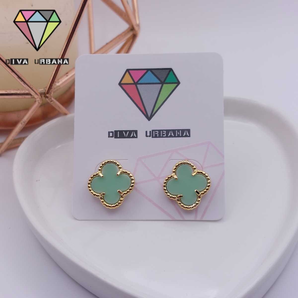 B6543 BRINCO PINO TREVO VERDE CLARO INSP ALTA JOALHERIA