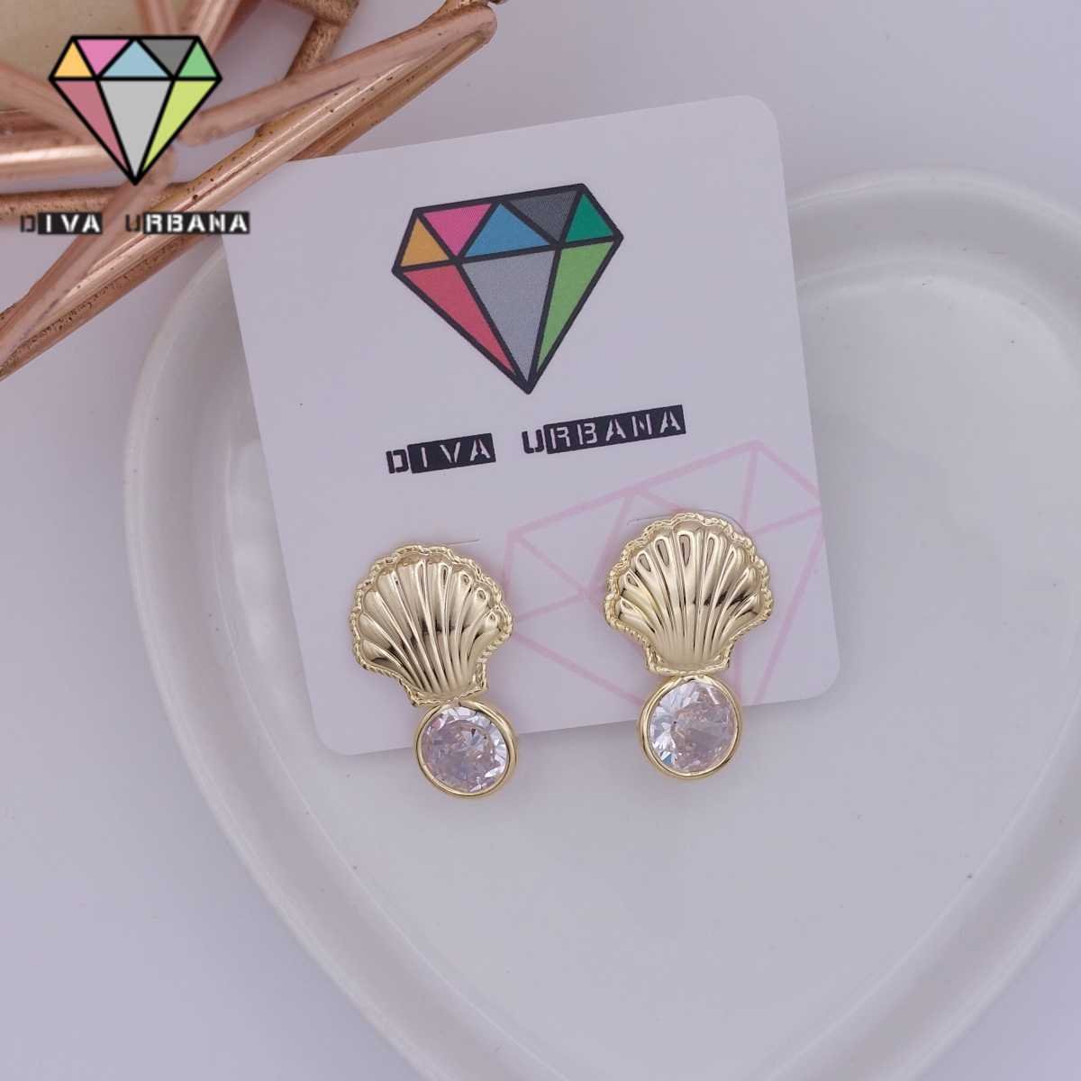 B6790 BRINCO MOLDURA DOURADA PEDRA GOTA CRISTAL P