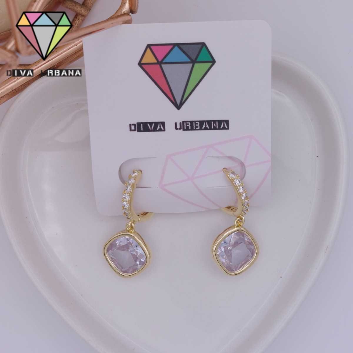 B6625 BRINCO ARGOLA ZIRC CRISTAL PEDRA QUADRADA ARREDONDADA G