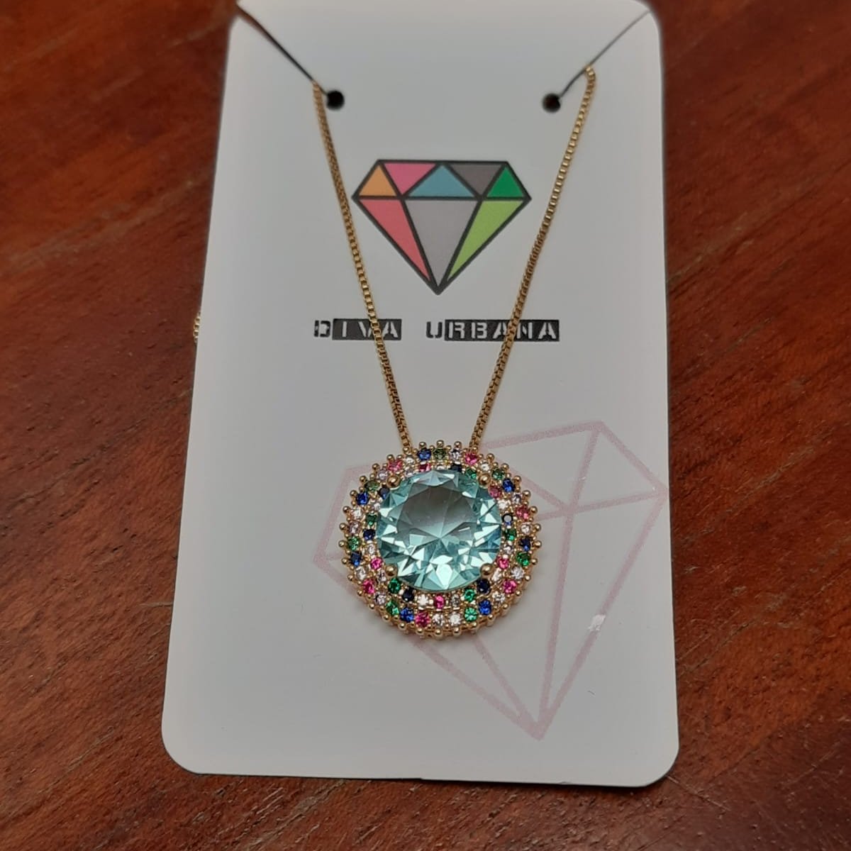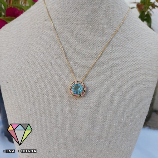 C0985 COLAR PEDRA AZUL CRAV ZIRC COLORIDA
