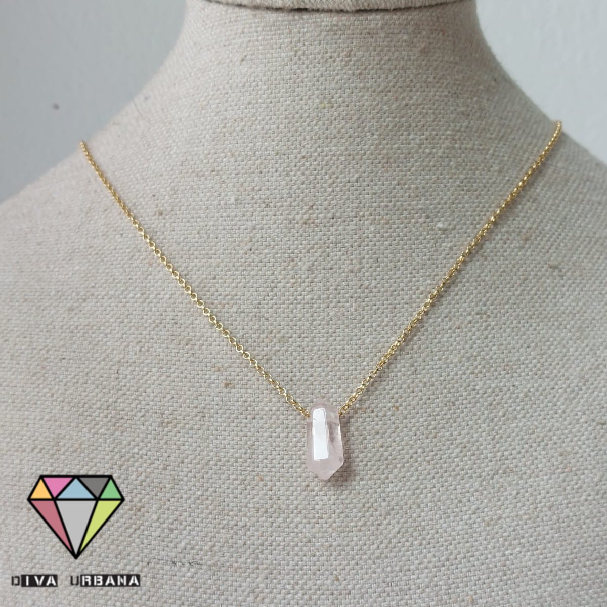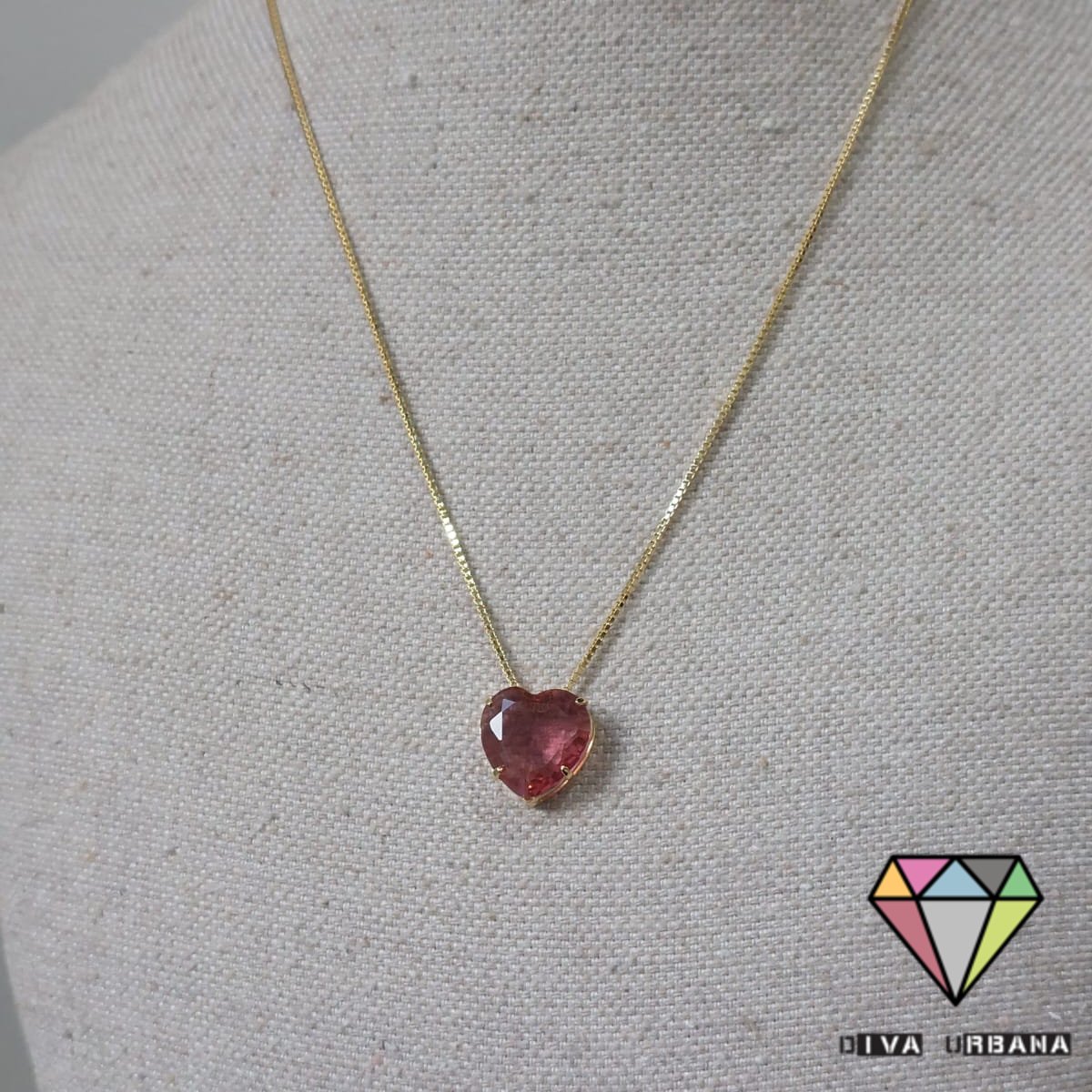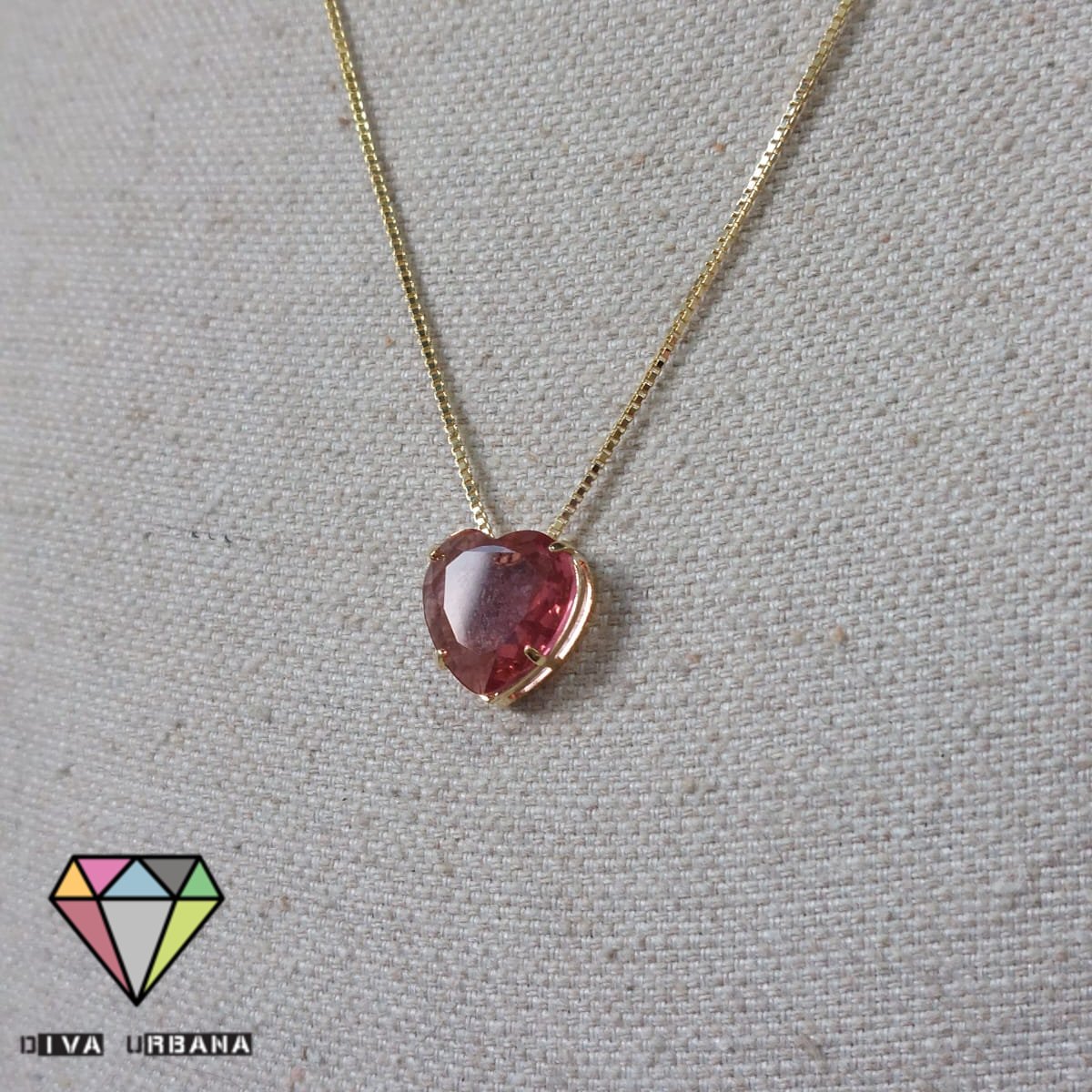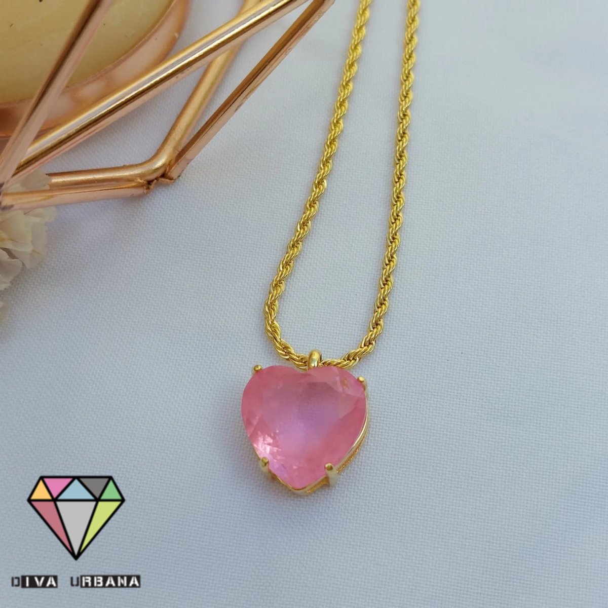 C1644 COLAR BAIANO PEDRA FUSION CORACAO ROSA CLARO
