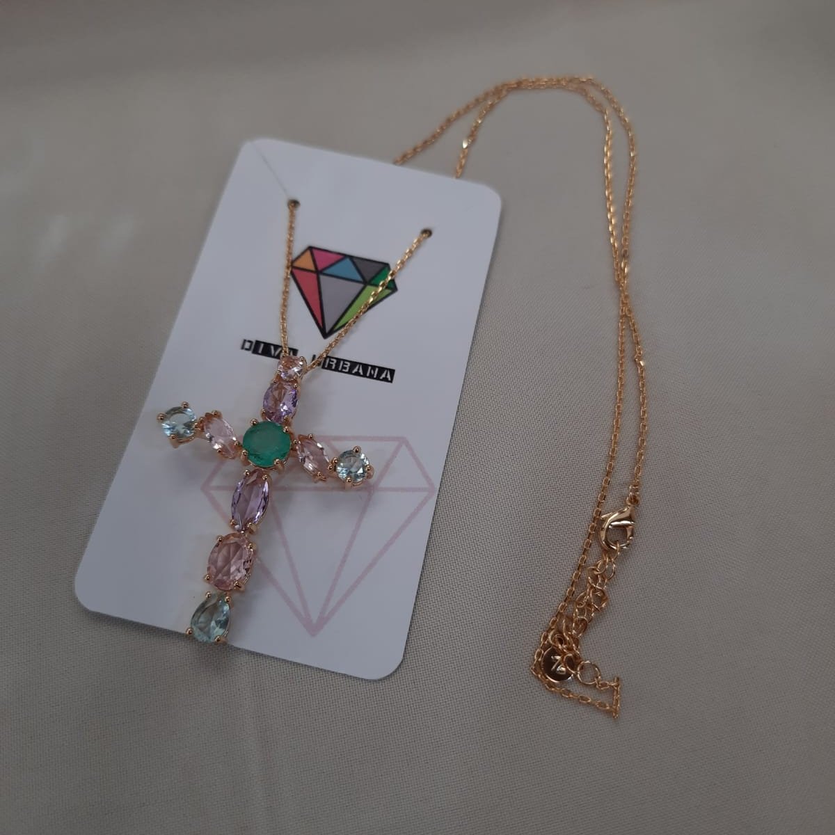 C1377 COLAR CRUZ ZIRC COLORIDAS 45 CM