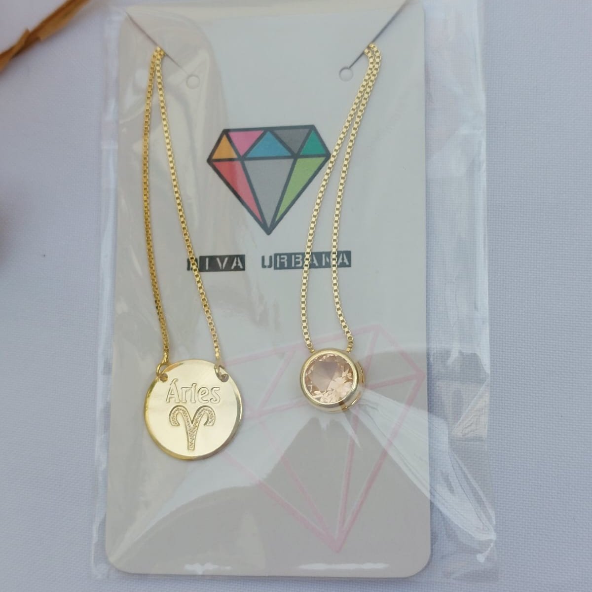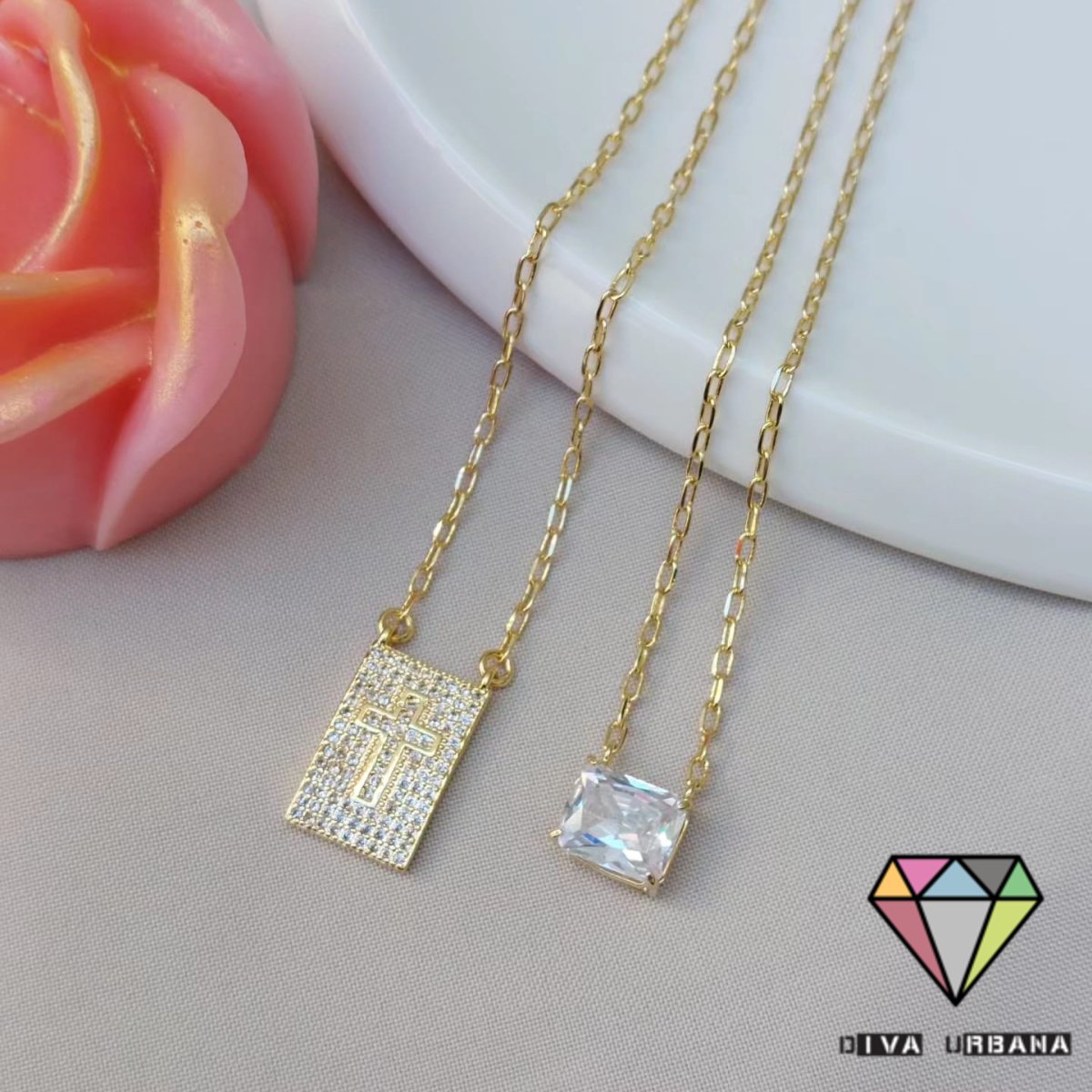 C2025 COLAR ESCAPULARIO PLACA CRAV ZIRC CRISTAL E PEDRA QUADRADA G