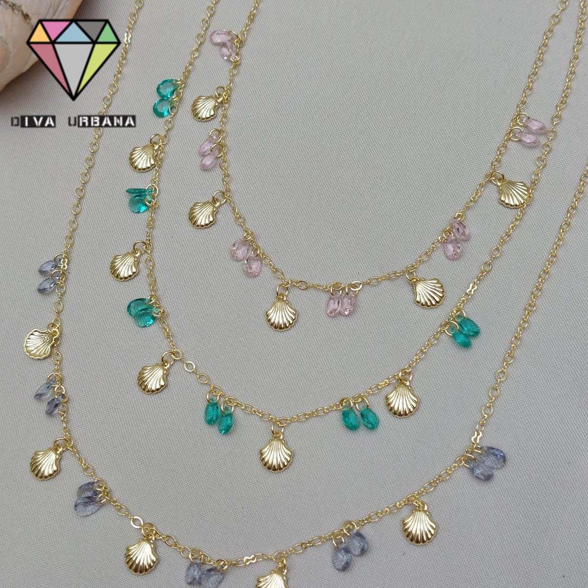 C1748 COLAR QUATRO CONCHAS PTS LUZ DUPLO VERDE