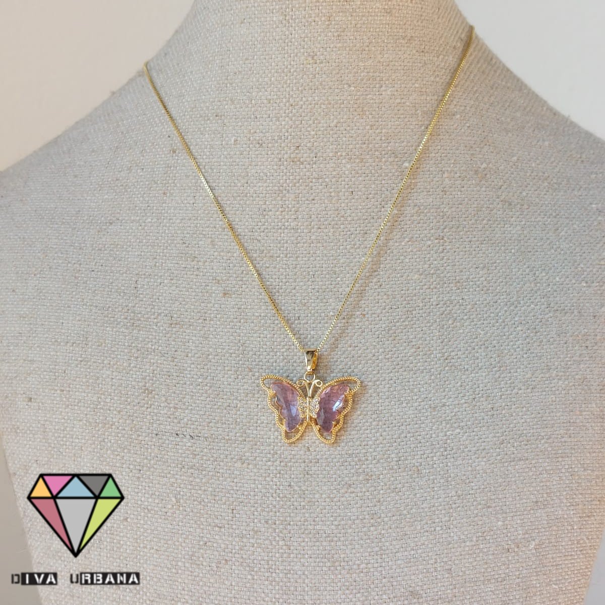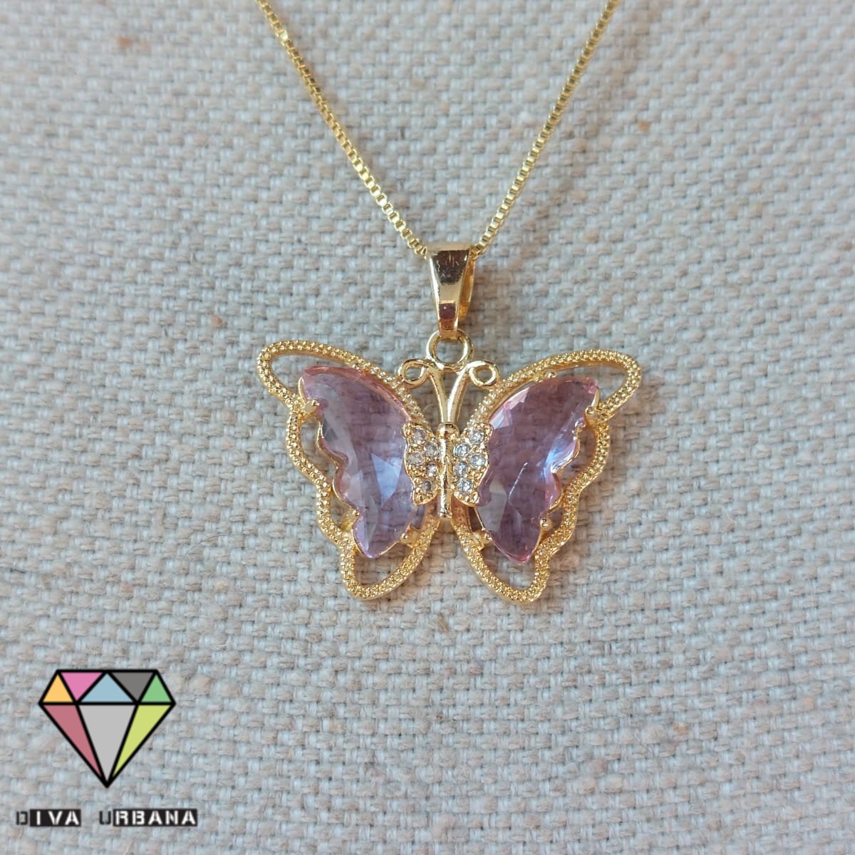 C1922 COLAR BORBOLETA CRISTAL LAVANDA BORDA DOURADA CRAV CENTRAL