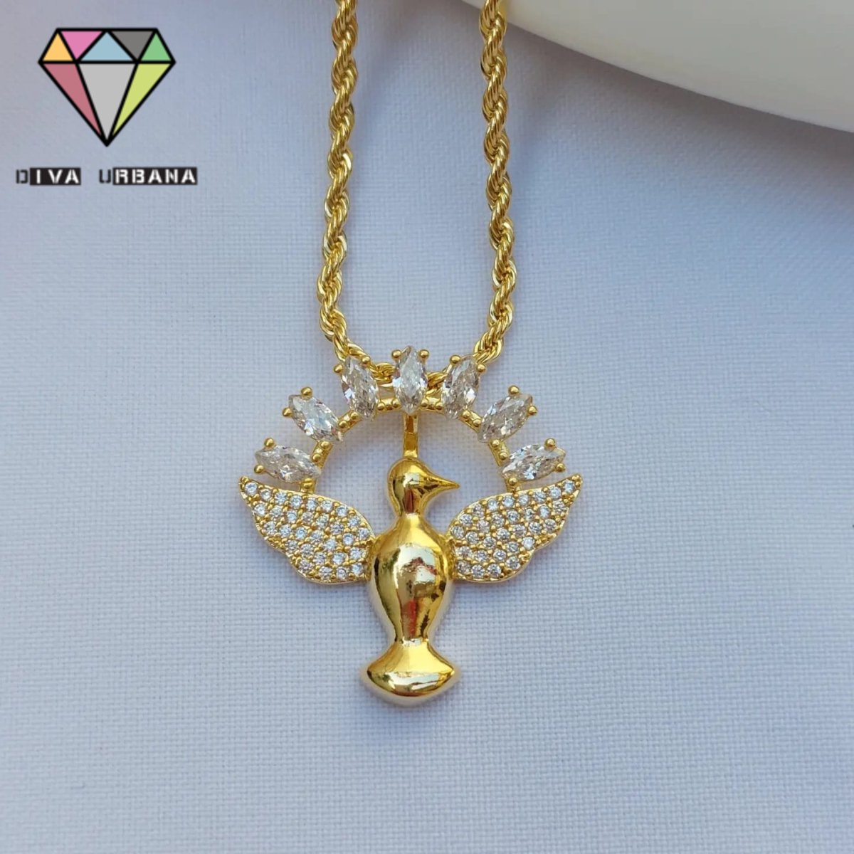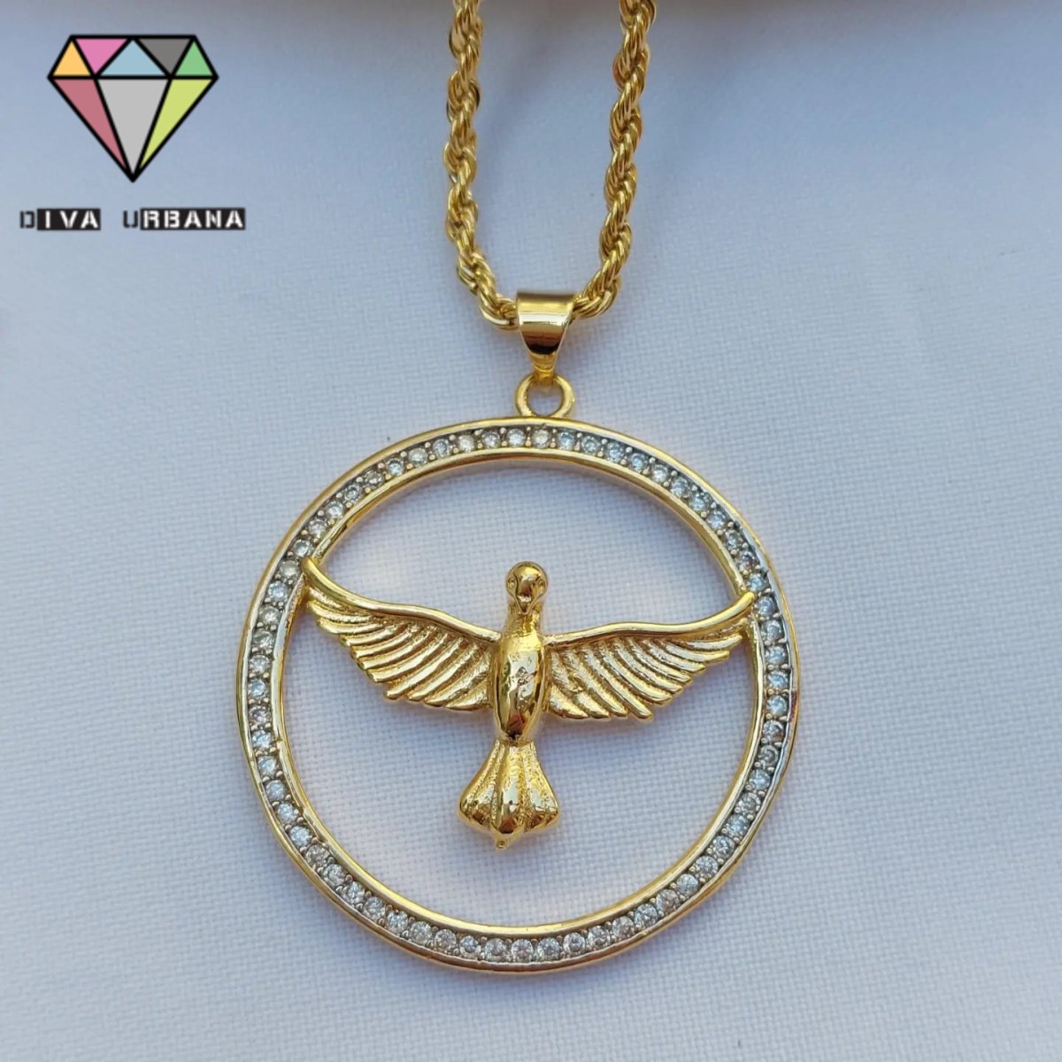 C2047 COLAR CORDAO BAIANO MANDALA ESPIRITO SANTO CRAV ZIRC CRISTAL