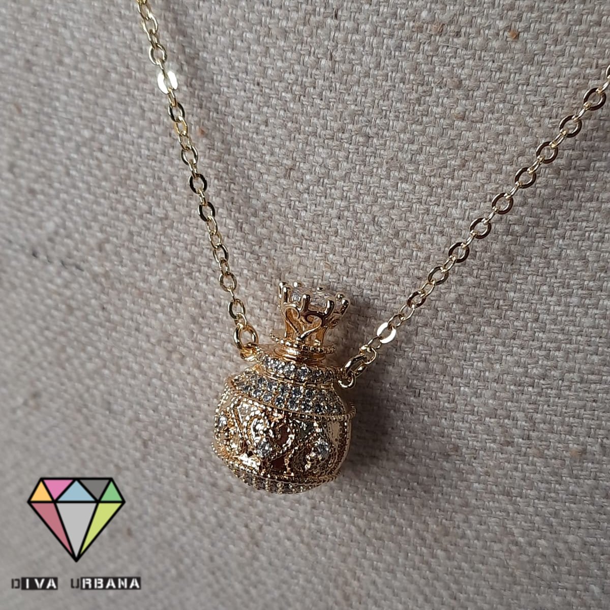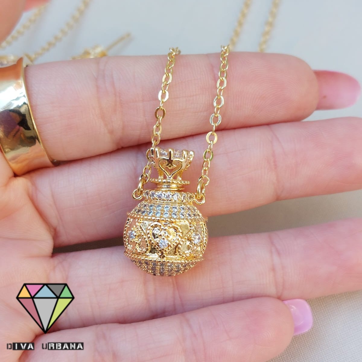 C2252 COLAR DOURADO PERFUMEIRO CRAVEJADO ZIRC CRISTAL