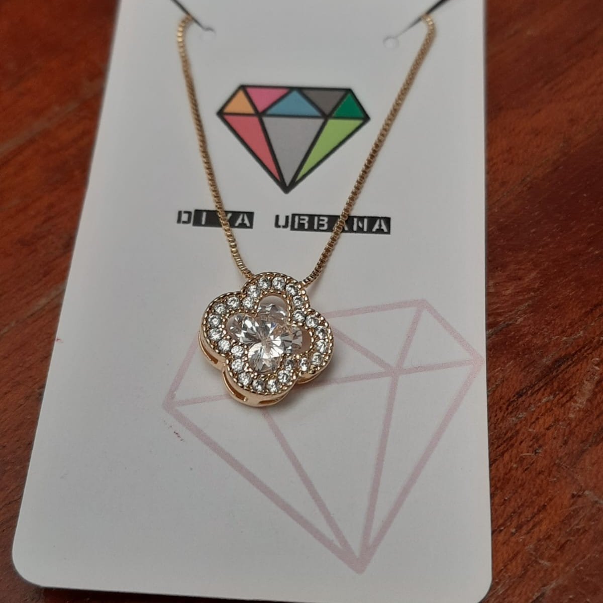 C2287 COLAR VENEZIANO PEDRA TREVO BORDAS CRAV ZIRC CRISTAL