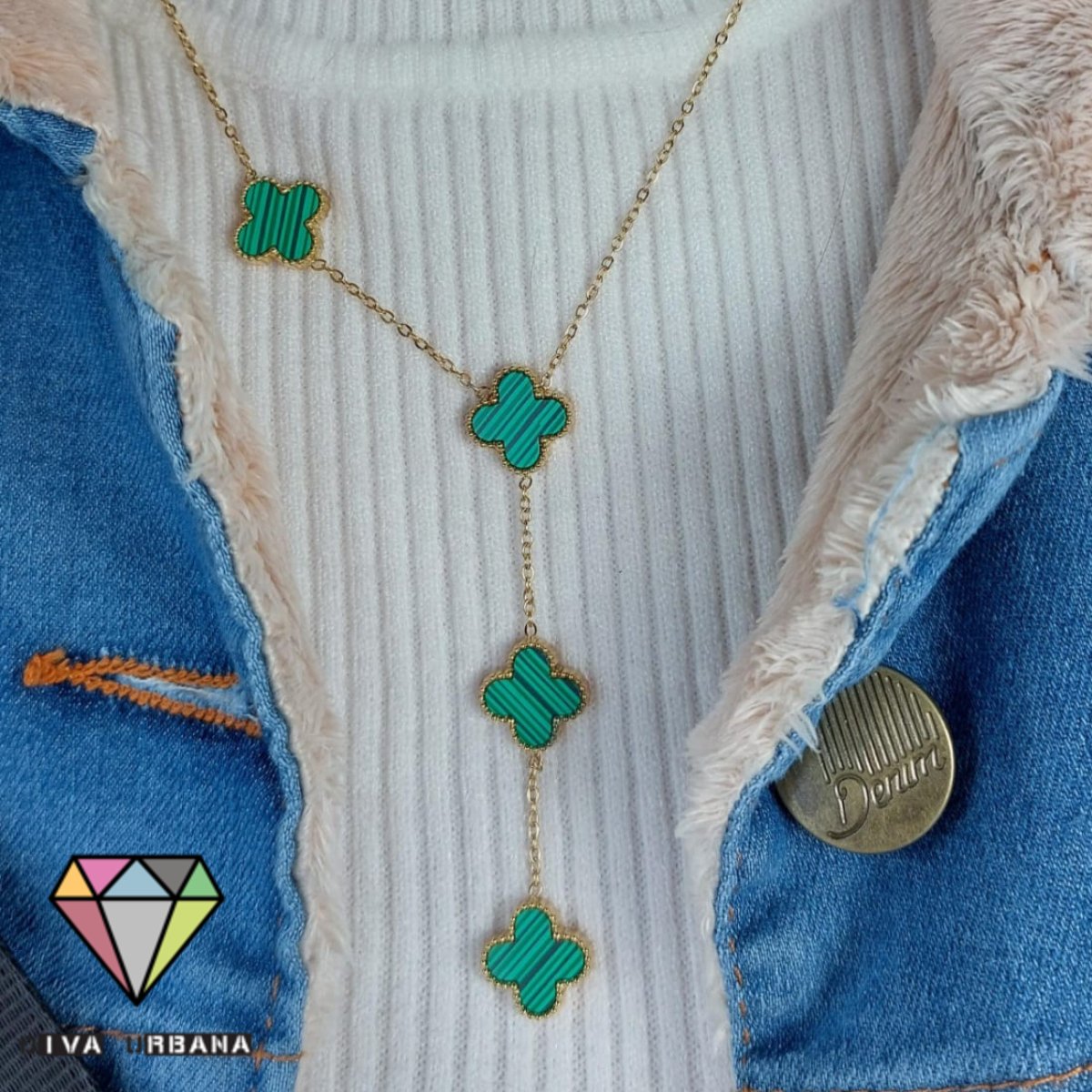 C2362 COLAR ESTILO GRAVATINHA TREVO VERDE INSP VAN CLEFF