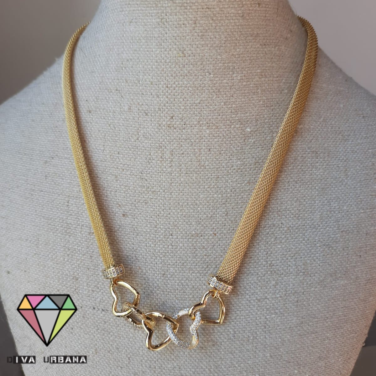 C2400 COLAR LONGO CORAÇÕES DOURADO