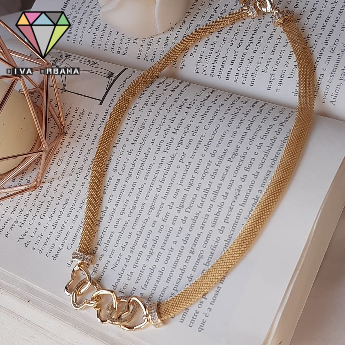 C2401 COLAR MALHA ITALIANA PINGENTE CORAÇÕES