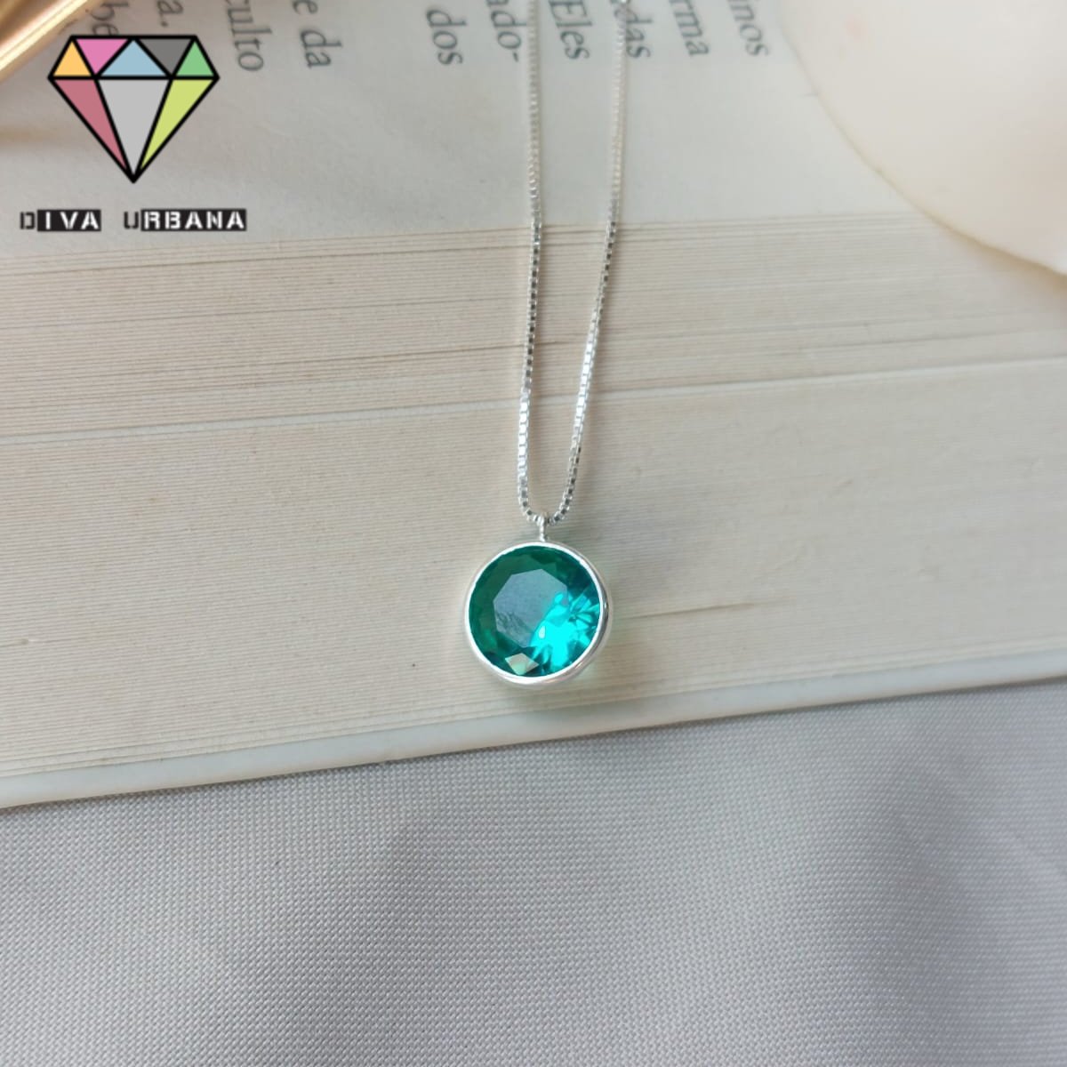 C2413 COLAR PRATA 925 PONTO DE LUZ VERDE