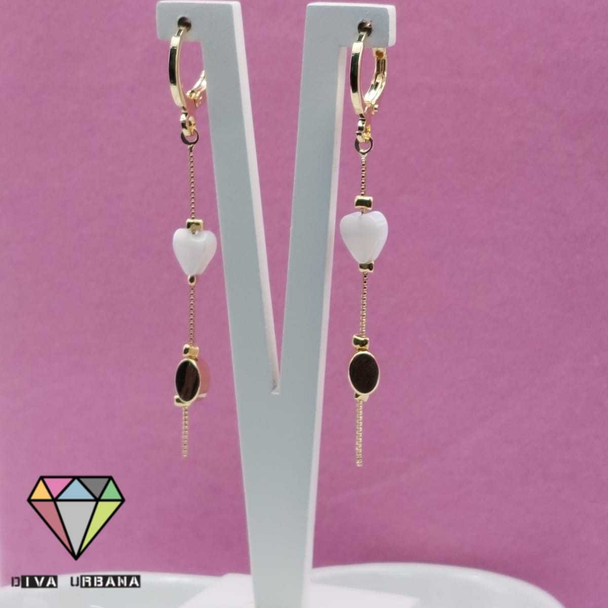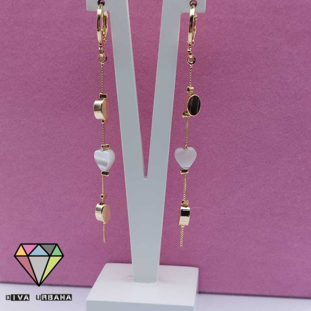 B4955 BRINCO ARGOLA PENDULO CORACAO MADREPEROLA OVAL DOURADO