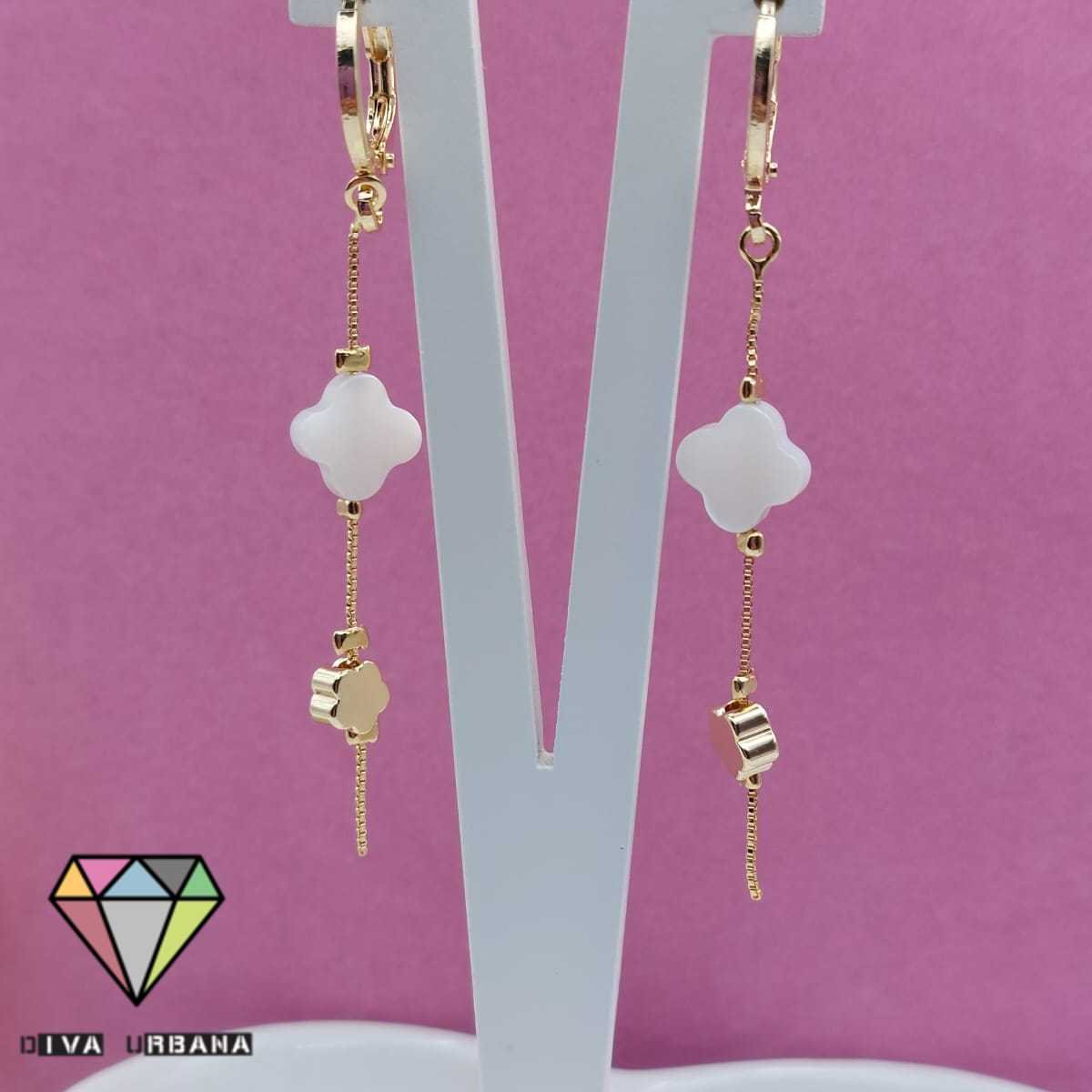 B4958 BRINCO ARGOLA PENDULO TREVO MADREPEROLA OVAL DOURADO