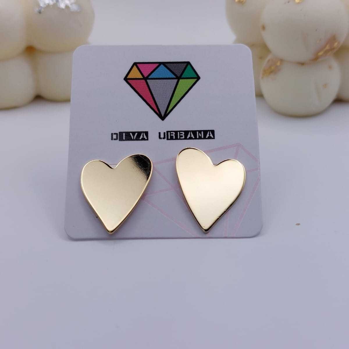 B5186 BRINCO PINO DOURADO CORACAO LISO ALONGADO G