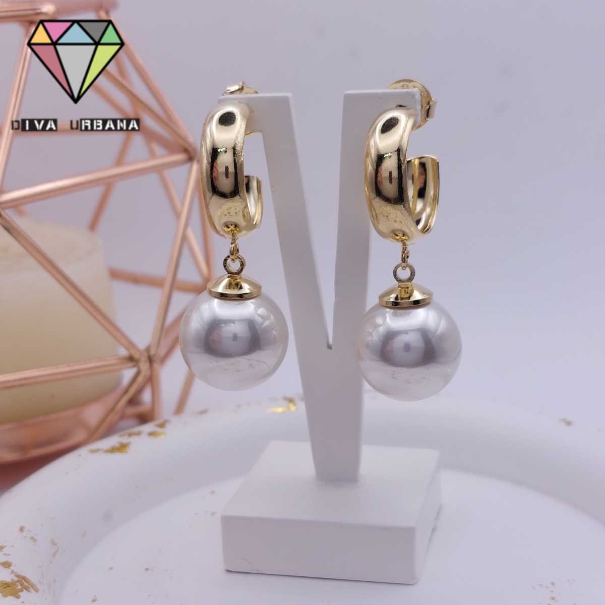 B5380 BRINCO ARGOLA PINO DOURADA PENDULO PEROLA GG MARFIM