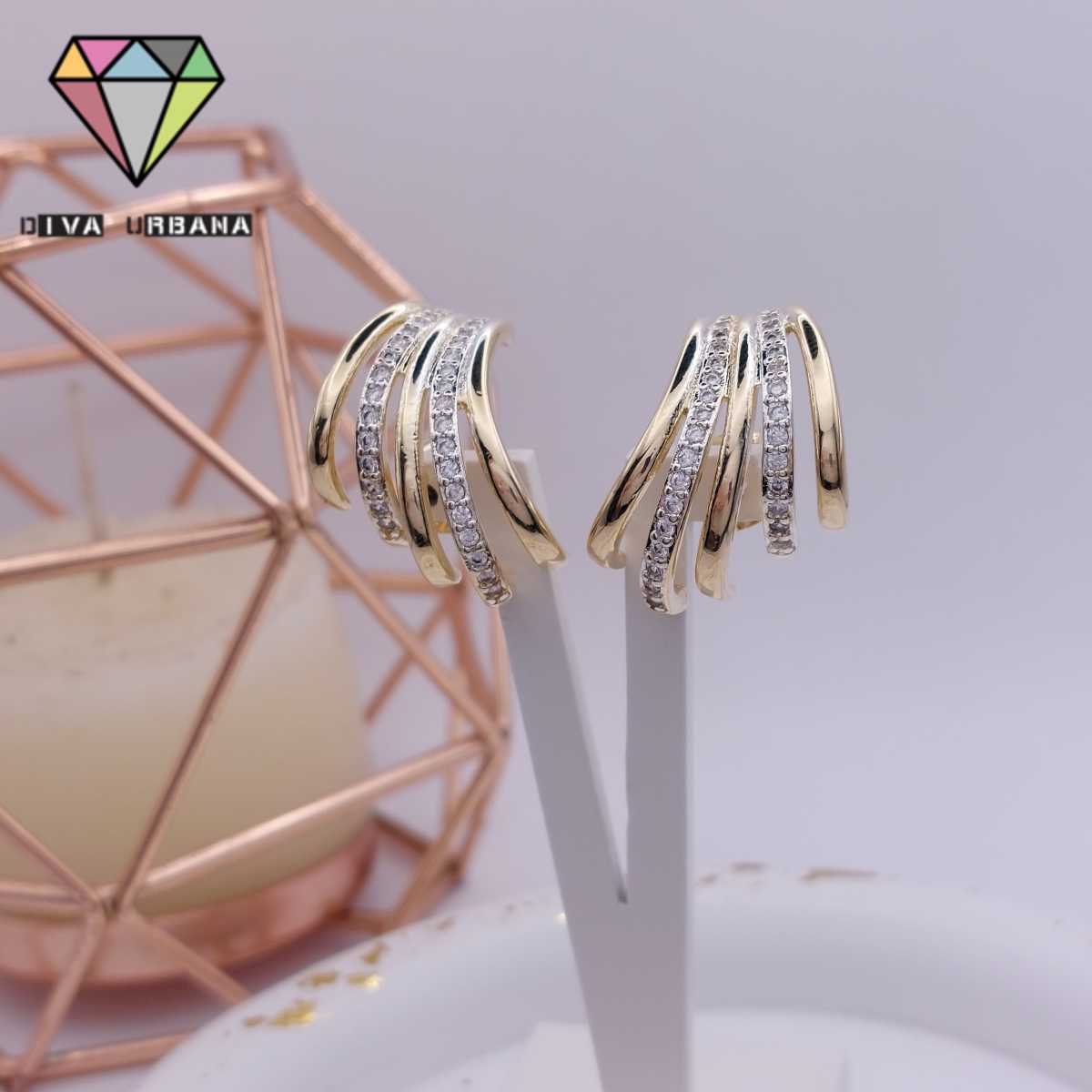 B5387 BRINCO EAR HOOK CINCO GARRAS LISAS E CRAV ZIR CRISTAL