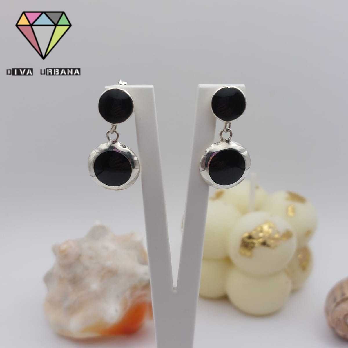 B4914 BRINCO PINO PENDULO REDONDO PRATA 925 BALI ONIX