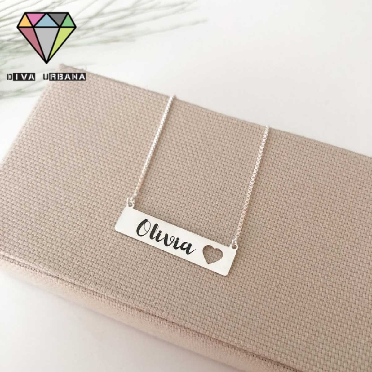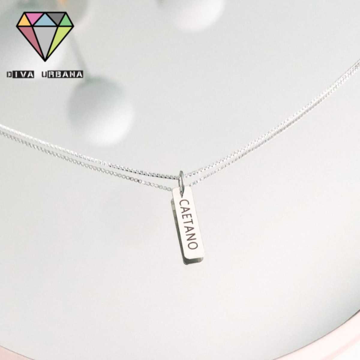 PE0001 COLAR PRATA 925 PLACA NOME PERSONALIZADO SOB ENCOMENDA