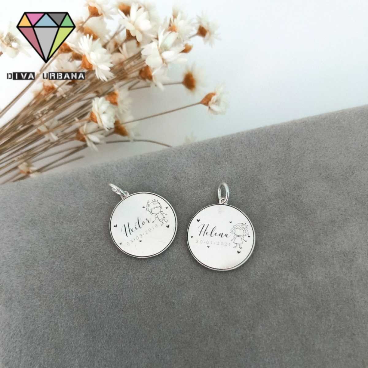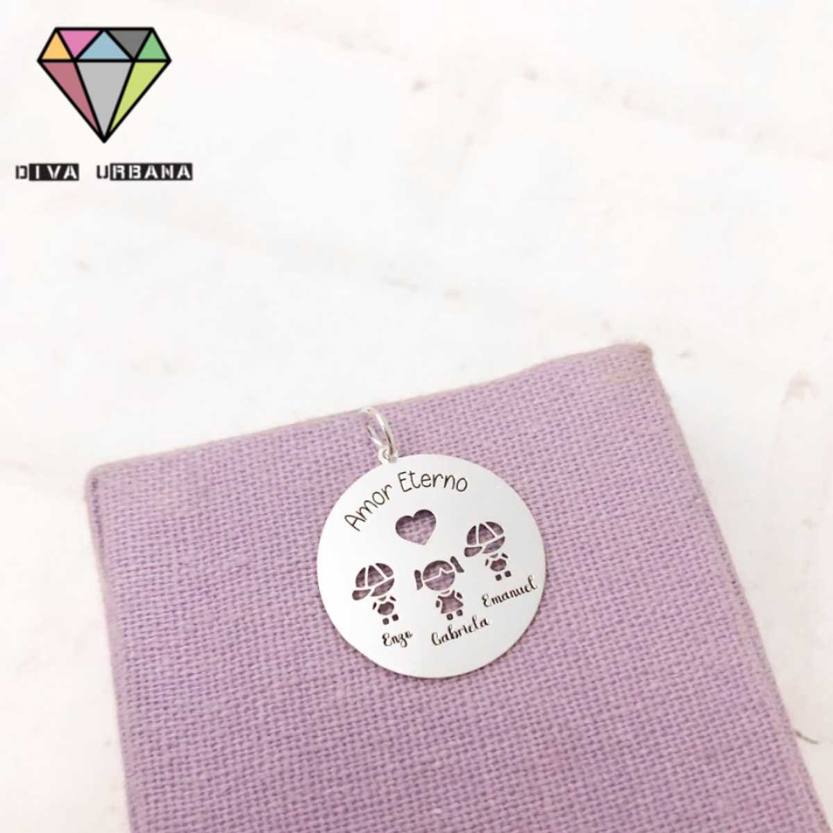 PE0002 PINGENTE PRATA 925 MEDALHA PERSONALIZADA FILHOS VAZADOS