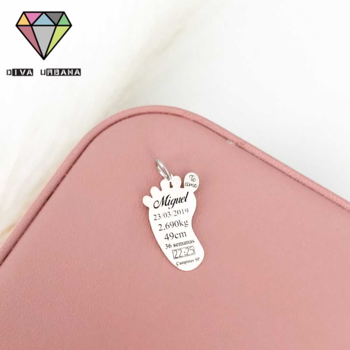 PE0011 PINGENTE PRATA 925 PEZINHO PERSONALIZADO DADOS NASCIMENTO