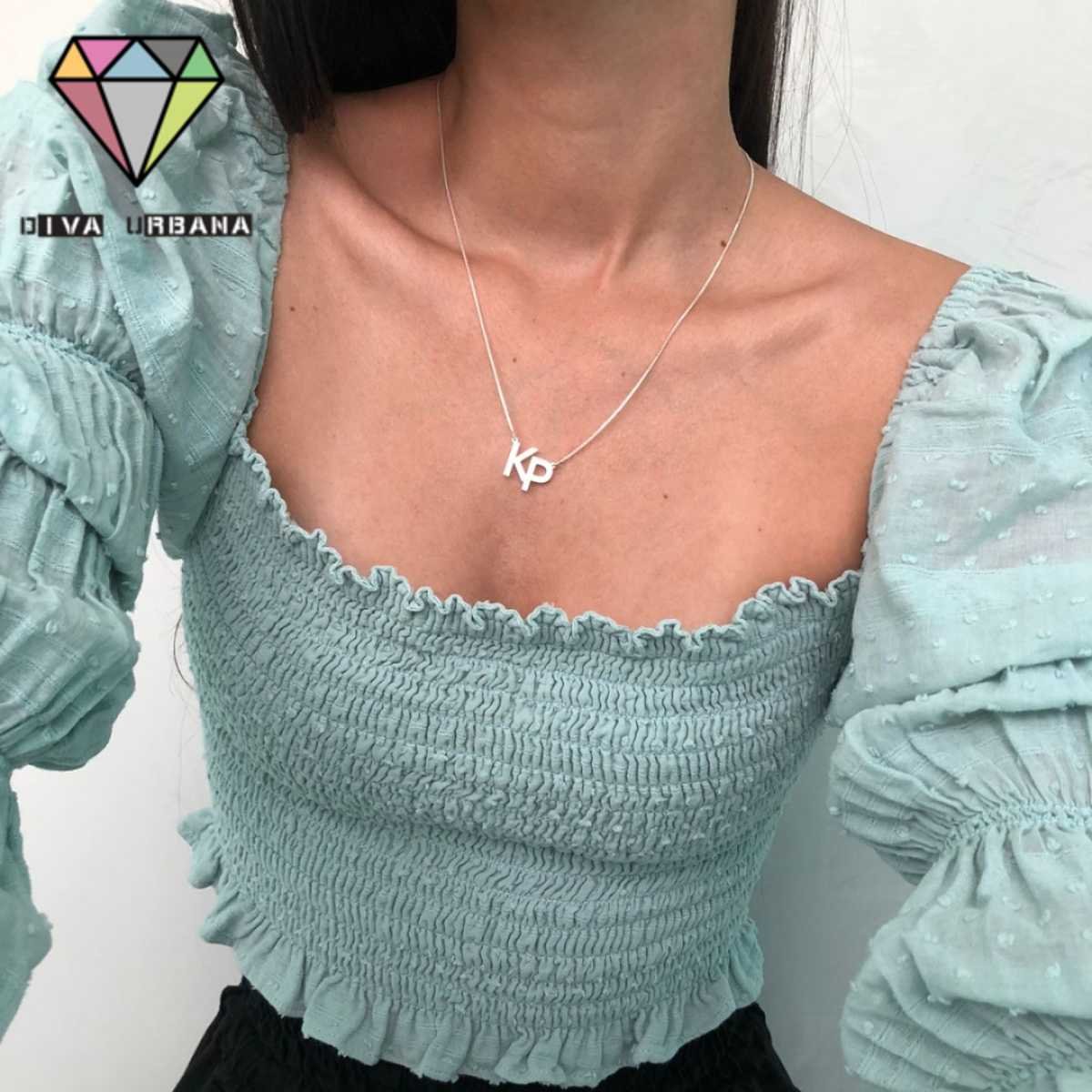 PE0012 COLAR PRATA 925 PERSONALIZADO DUAS LETRAS