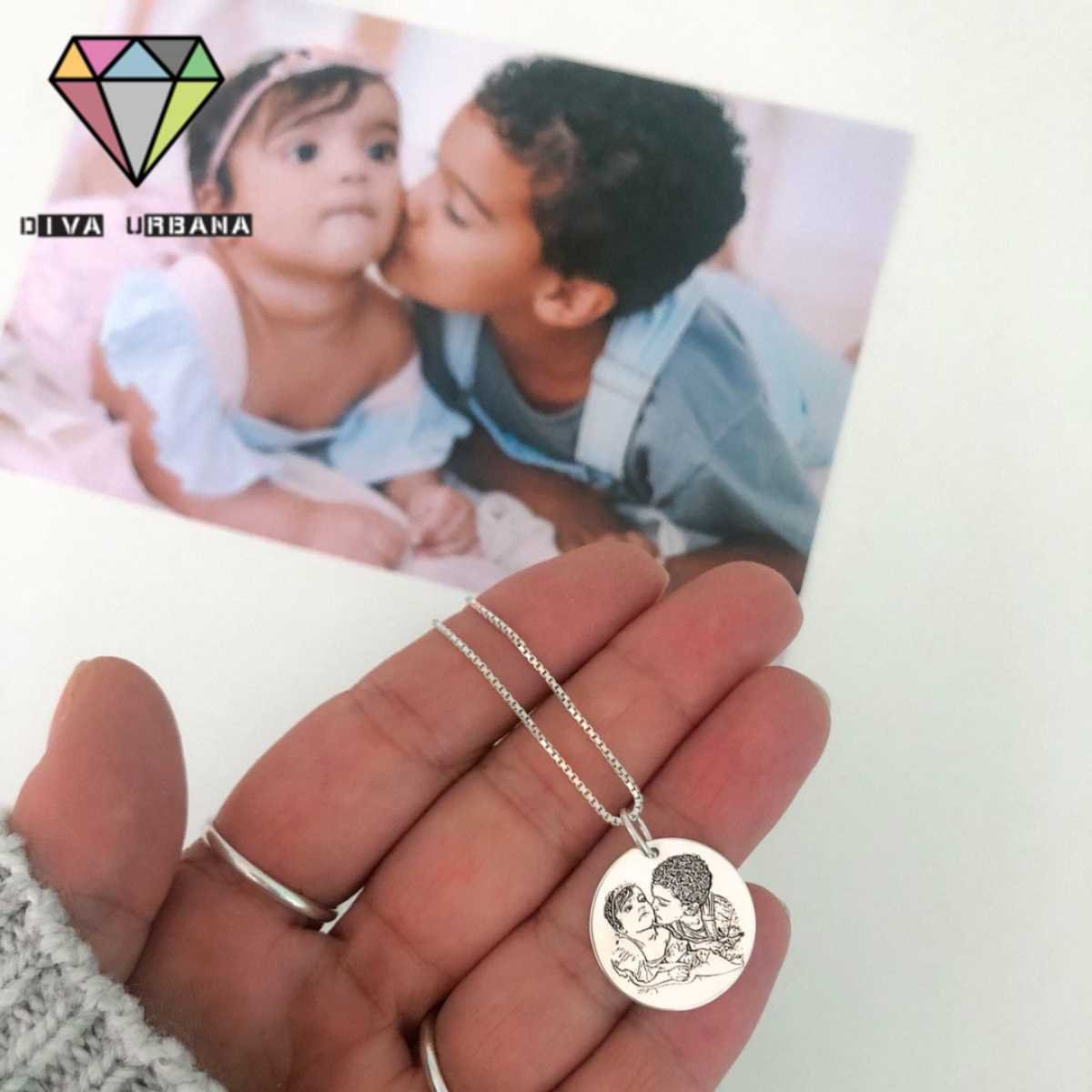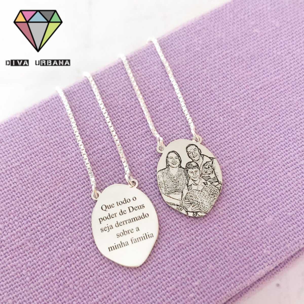 PE0021 ESCAPULARIO PRATA 925 ORGANICO FOTOGRAFIA E FRASE PERSONALIZ
