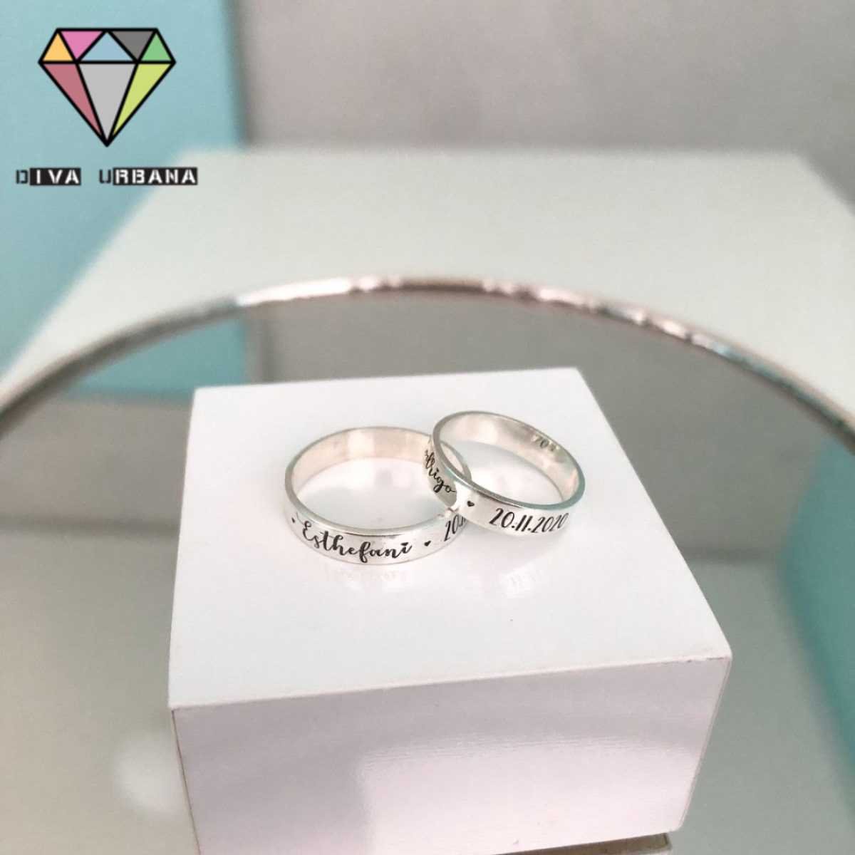 PE0014 PAR DE ALIANÇAS PRATA 925 PERSONALIZADO NOME E DATA 11 A