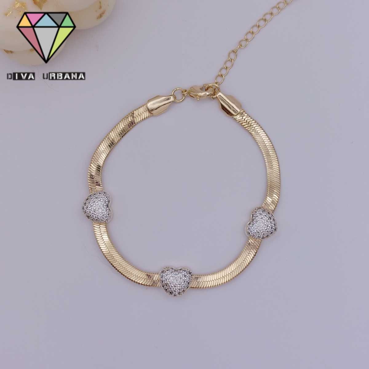 P2120 PULSEIRA ELO VENEZIANO DUPLO CORACAO VAZADO CRAV ZIRC CRISTA