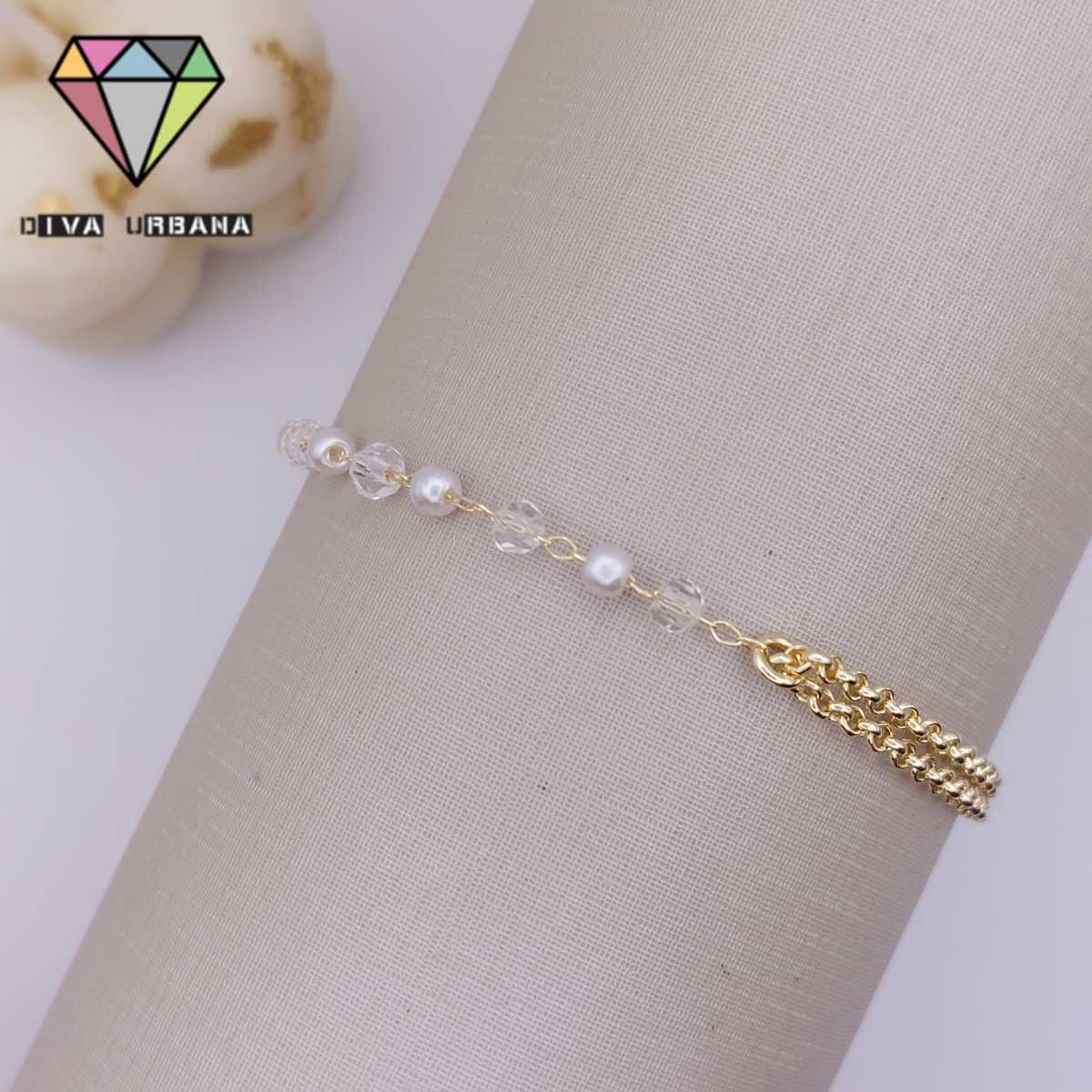 P1964 PULSEIRA ELO PORTUGUES DUPLO PÉROLAS E CRISTAIS