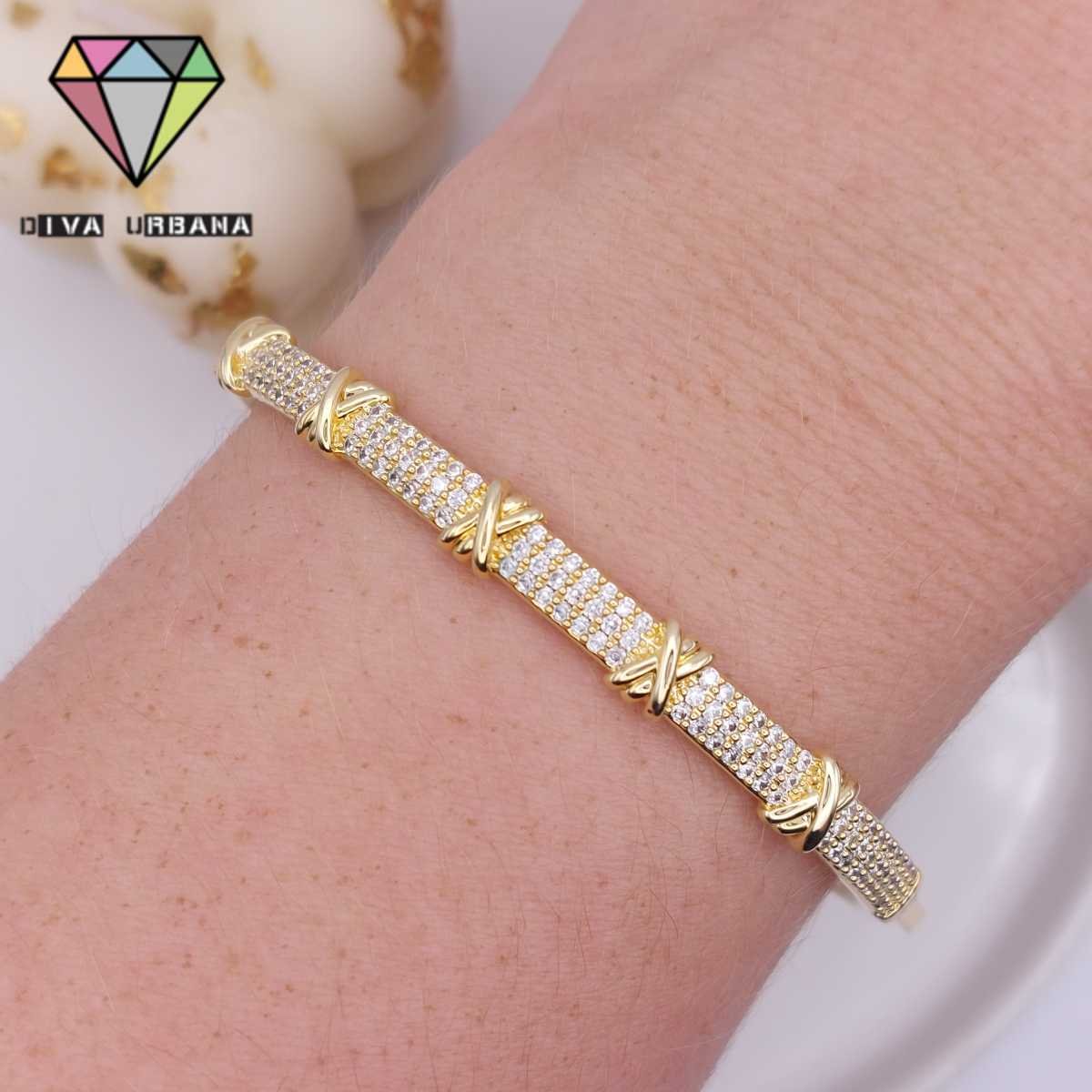 P2036 PULSEIRA DOURADA FECHO CLICK INSP ALTA JOALHERIA X CRAV ZIRC